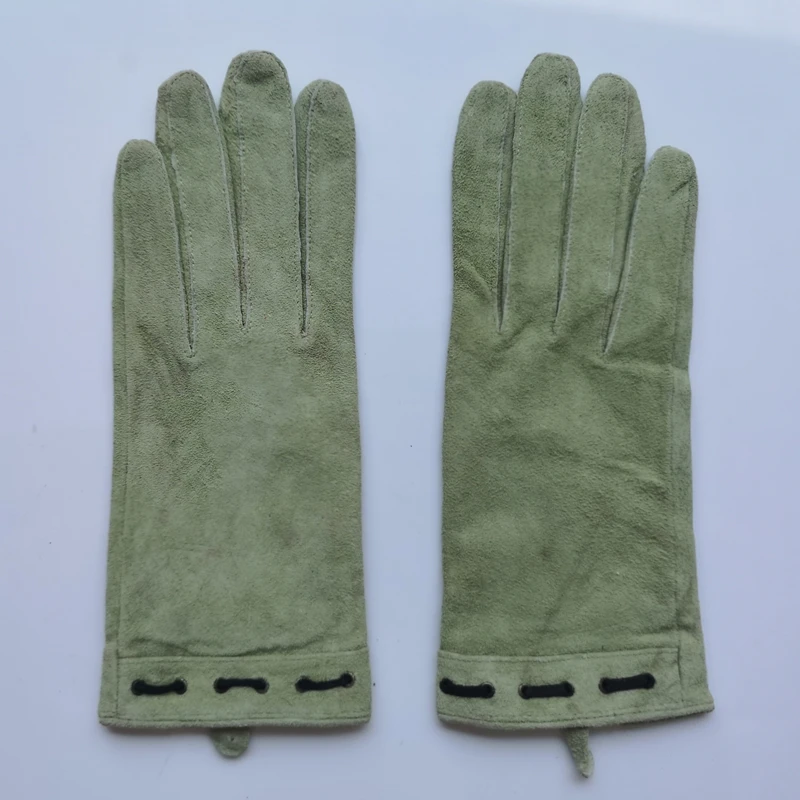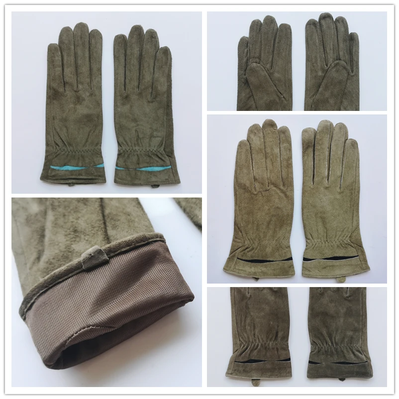 Перчатки женские зимние из натуральной замши, зеленые