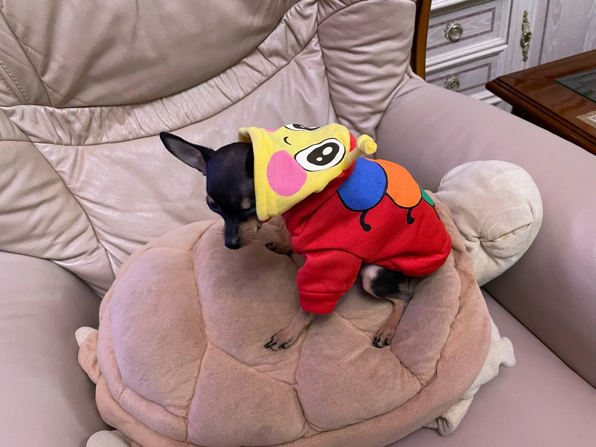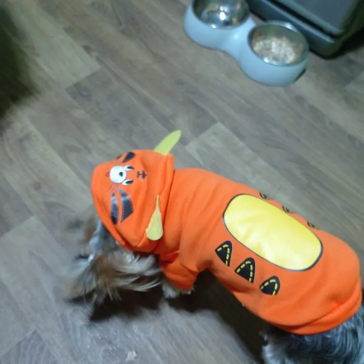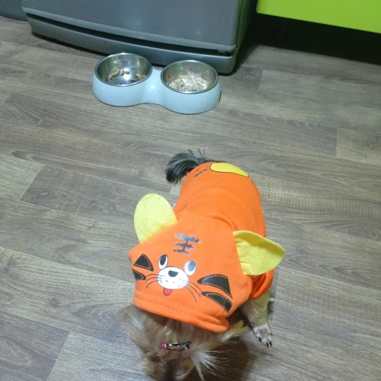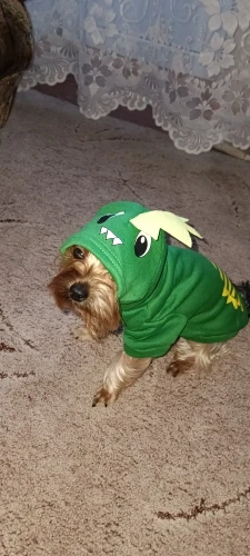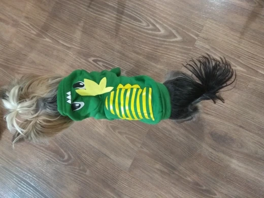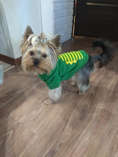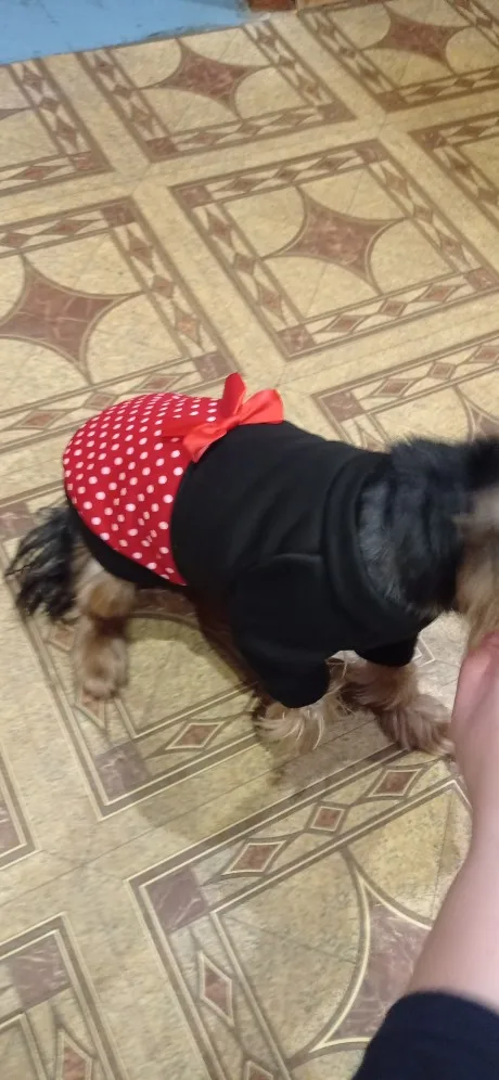 Заказ пришёл в течении месяца, кофточкой довольны, по размеру подошла идеально. Размер М на Йорка 2,8 кг.