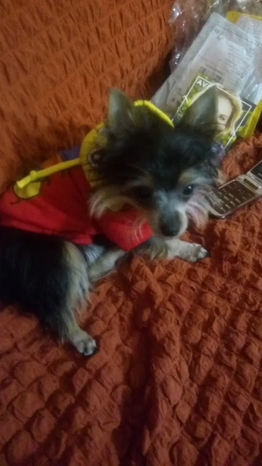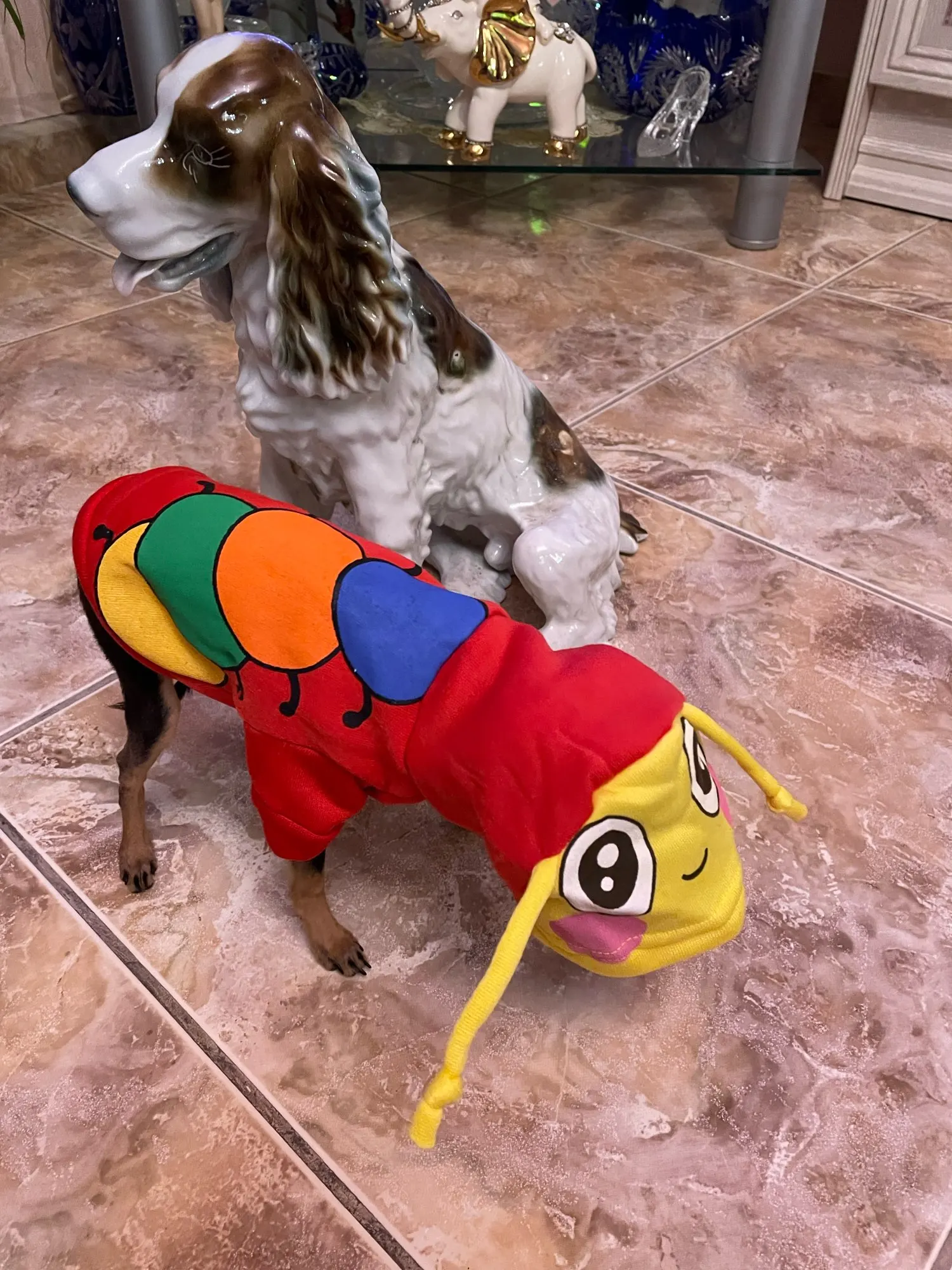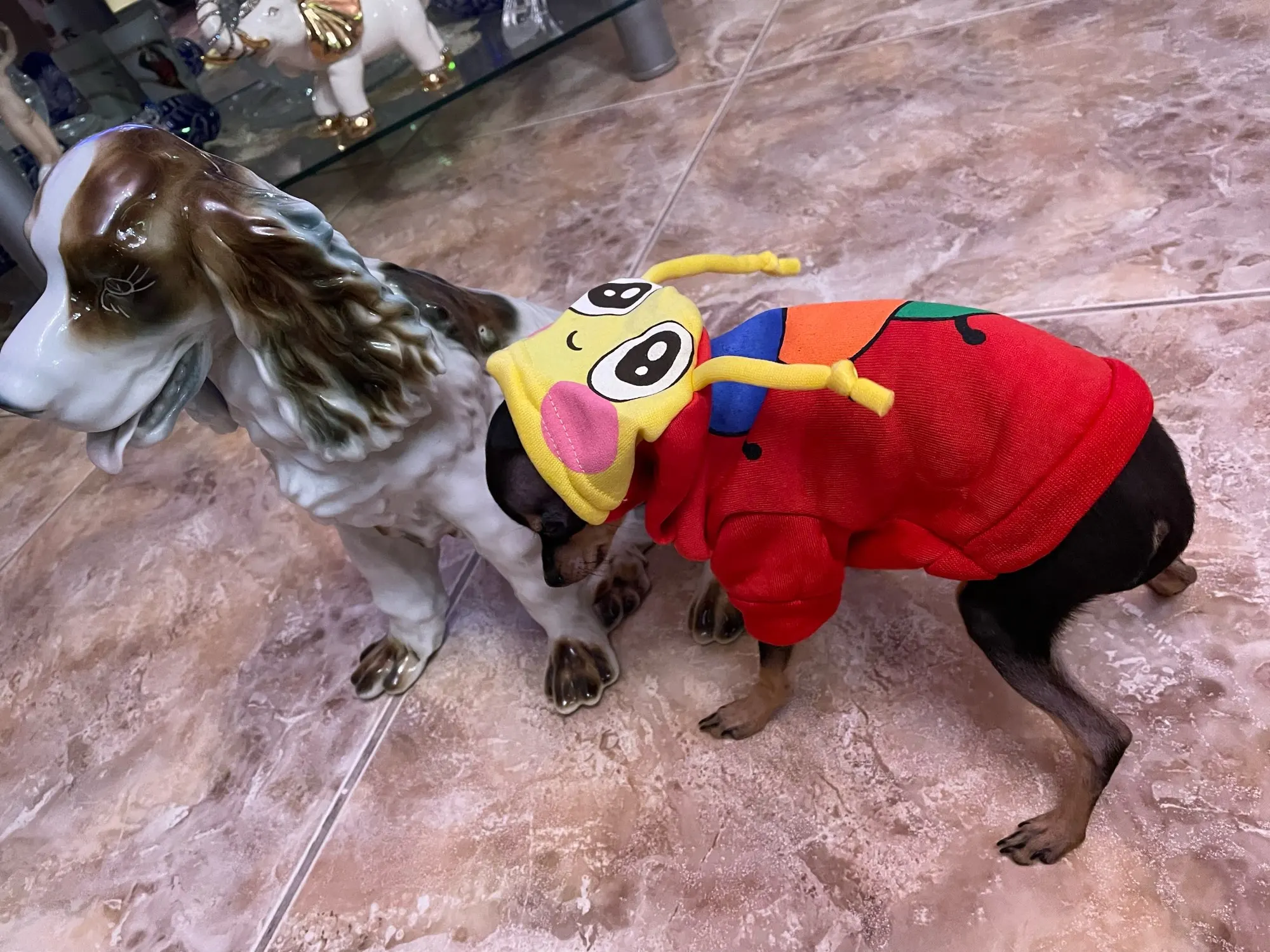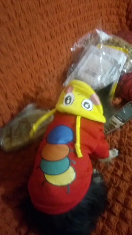 Заказ пришёл в течении месяца, кофточкой довольны, по размеру подошла идеально. Размер М на Йорка 2,8 кг.