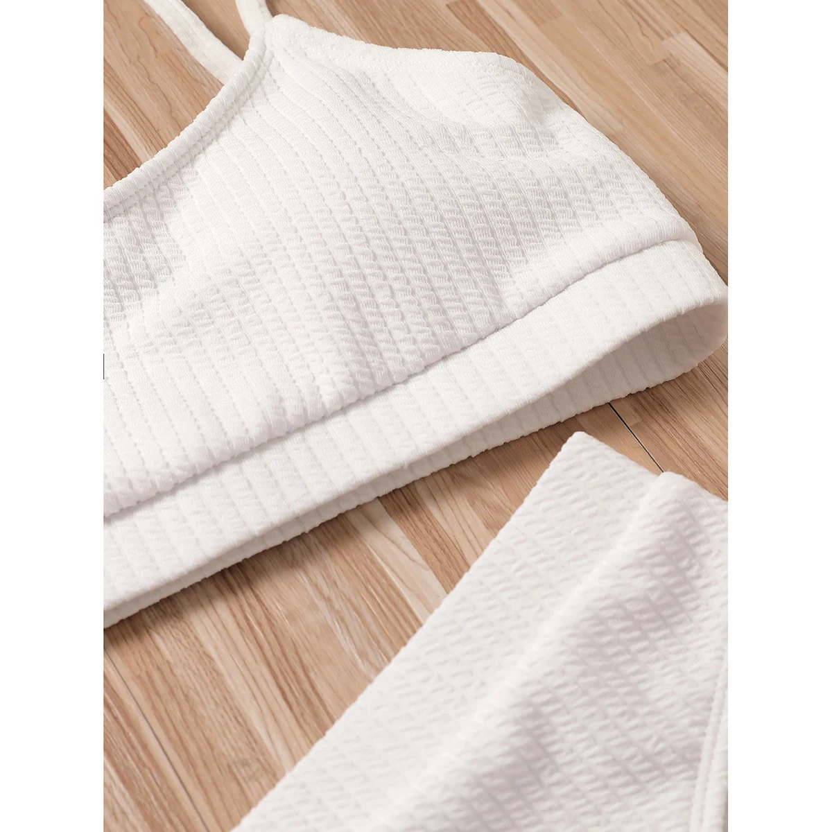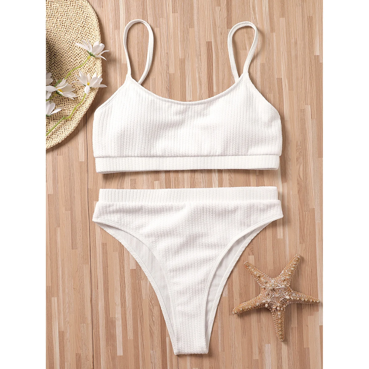 Бикини в рубчик 2022, сексуальный комплект бикини, однотонный купал...
