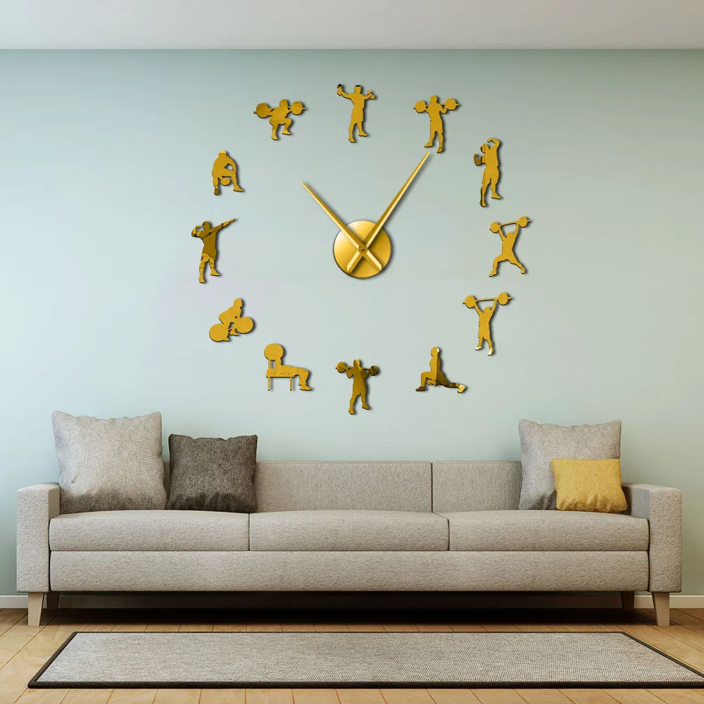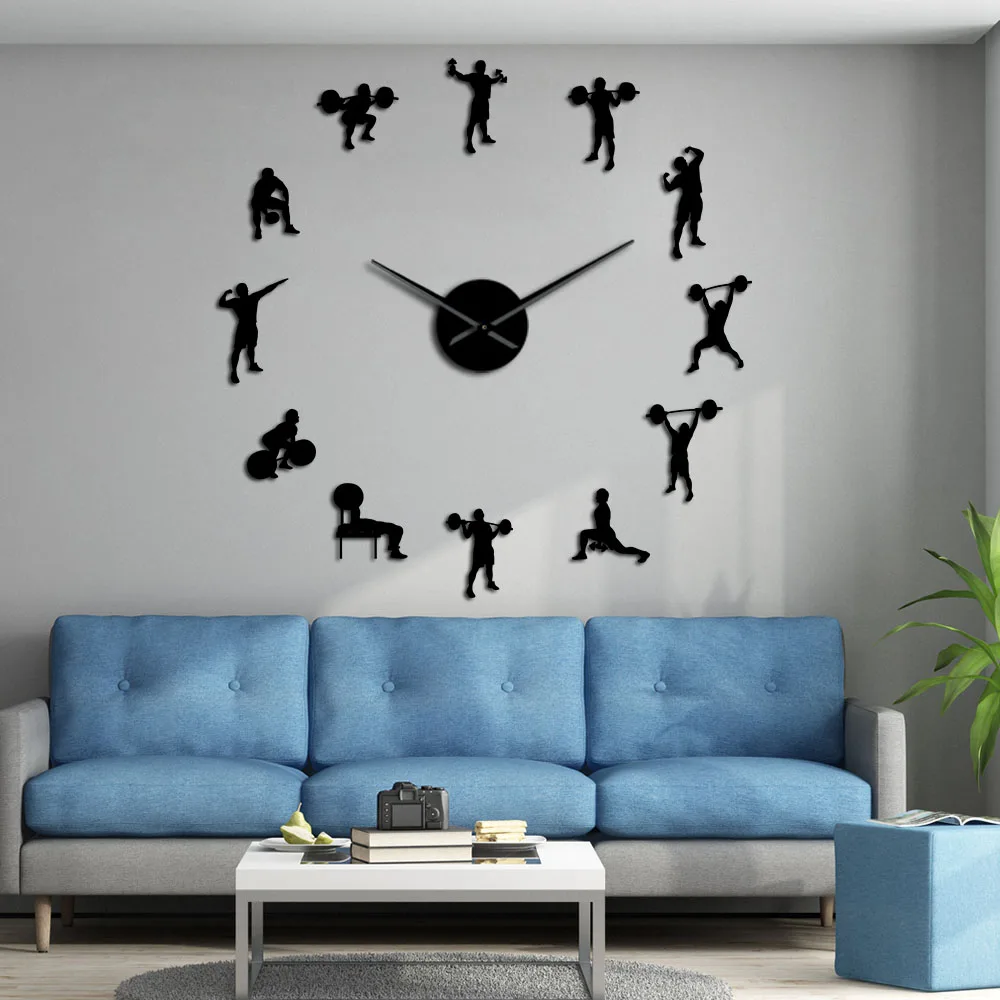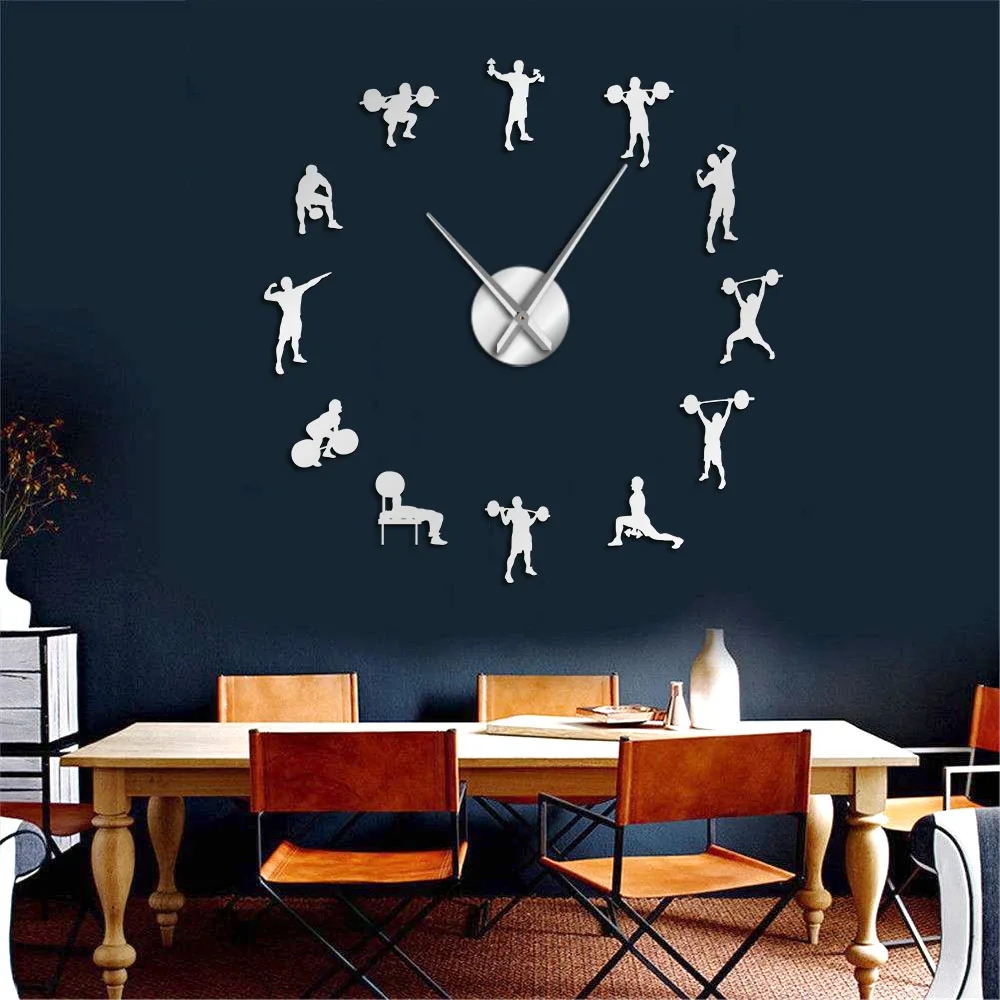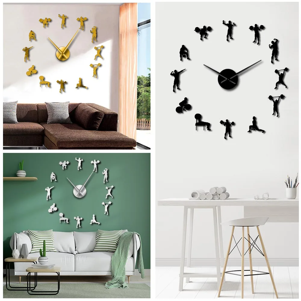 Гигантские настенные часы для спортзала, сделай сам, домашний декор, здоровье тела, человеческое искусство, часы, бесшумные акриловые большие часы, бодибилдинг, подарок