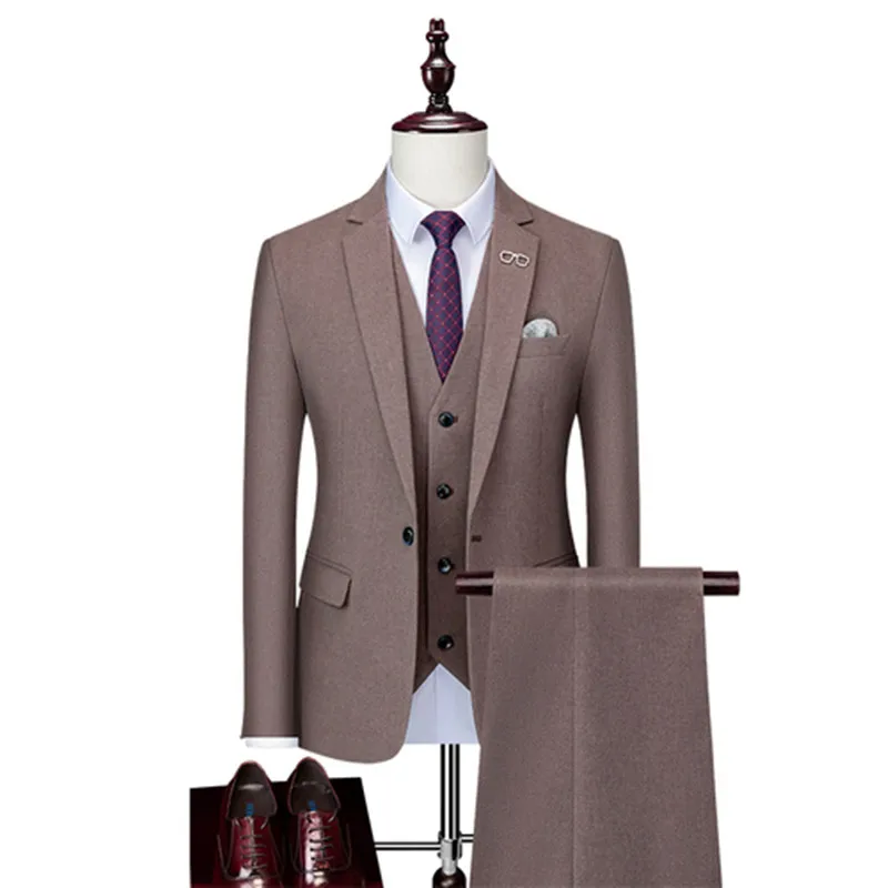 Мужской повседневный костюм из трех предметов, однотонный пиджак и жилет для деловых встреч и свадеб, 2021