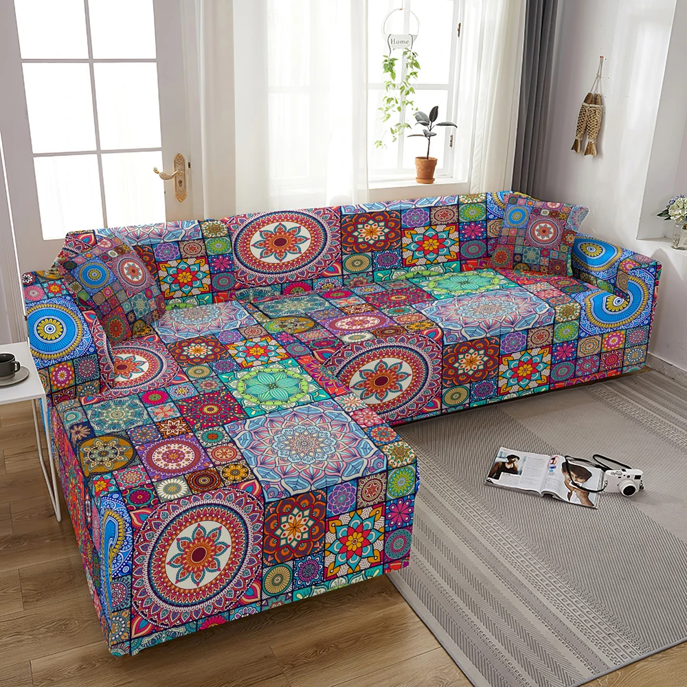 Чехол Мандала для гостиной эластичный угловой чехол для дивана L-образной формы эластичный чехол для дивана шезлонг 1-4 сиденья
