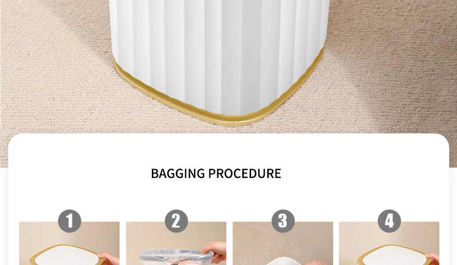 Общий дизайн мусорного бака простой и легкий, и он также очень чувствителен в эксплуатации и использовании. Эта емкость-то, что я хочу. Цвет и стиль мне нравятся. Дизайн с крышкой также может уменьшить количество неприятных запахов. Также безопасно для использования. Он подходит для гостиной и очень хорош в общем использовании.