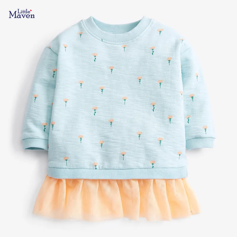 Детское осеннее платье Little maven, синяя сетчатая юбка для девочек от 2 до 7 лет, толстовка с цветами
