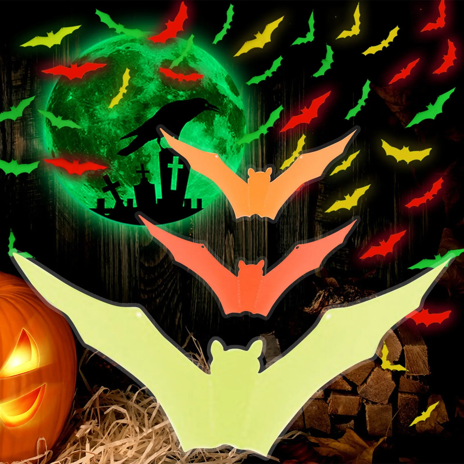Светящиеся 3d-наклейки с летучей мышью, 12 шт., для Хэллоуина, стра...