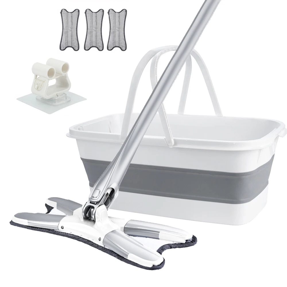 X Tpye швабра с ведром без рук, моющая ленивая плоская швабра, вращающаяся на 360 градусов, Швабра для пола с 3 шт., микрофибра, колодки, бытовые чистящие инструменты