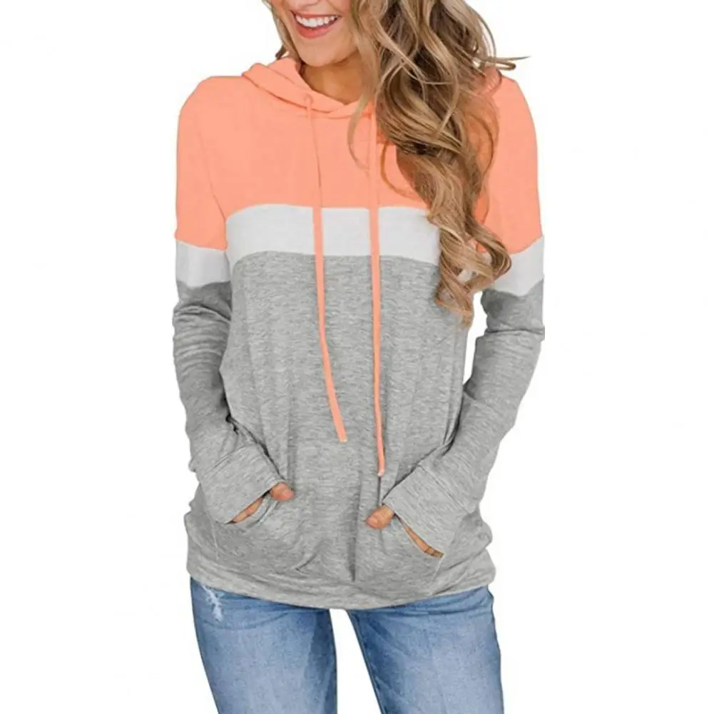 Женские толстовки размера плюс, толстовка с капюшоном в стиле пэчворк, свободный цветной топ на шнуровке, женские весенне-осенние толстовки