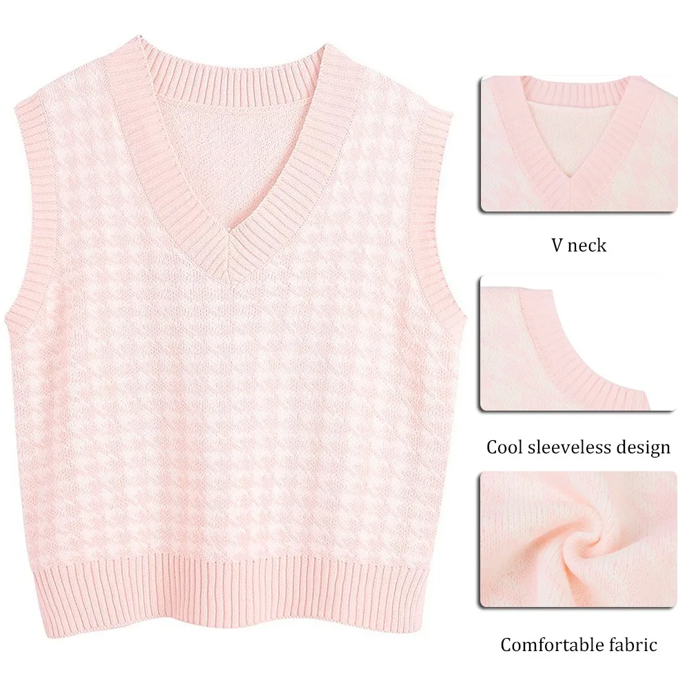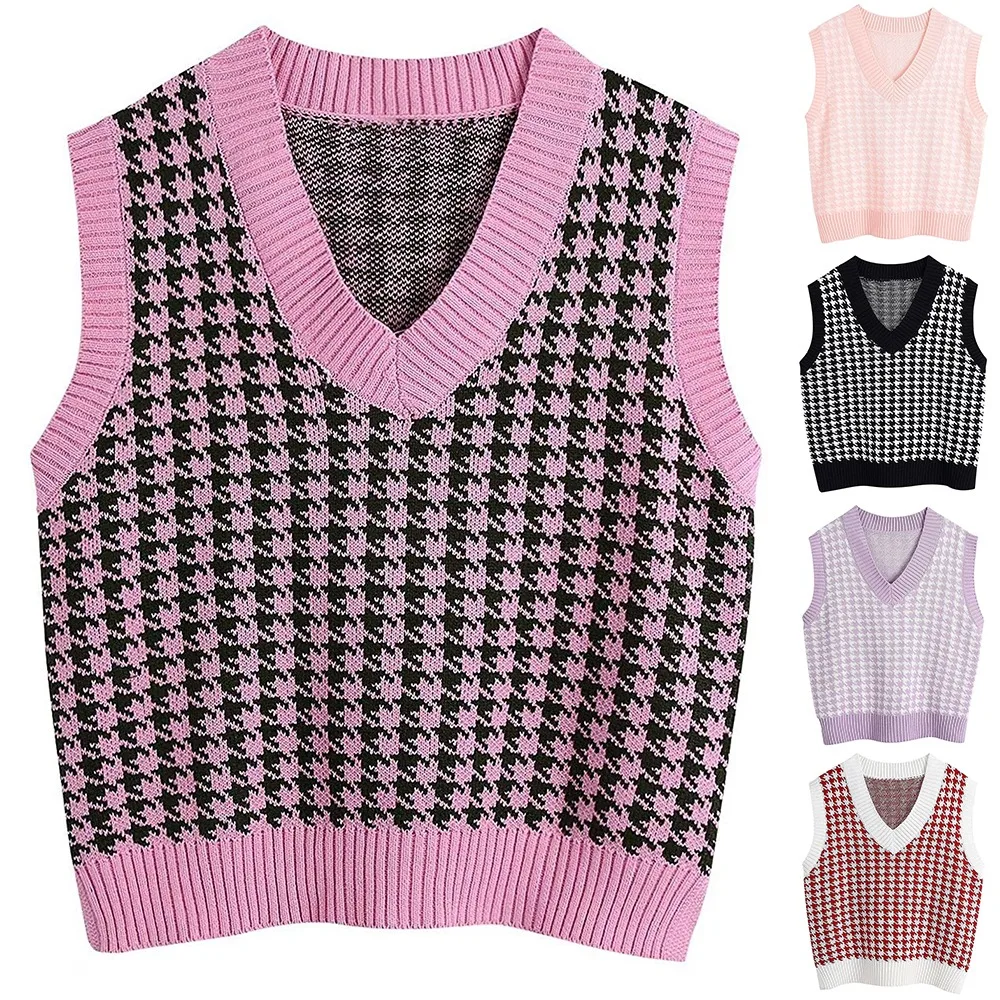 Жилет с рисунком гусиной лапки, Женский вязаный жилет, Осенний Свободный корейский уличный мягкий теплый свитер, жилет, свитер без рукавов для девочек