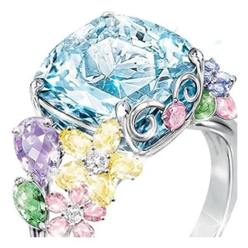 Роскошное блестящее многоцветное обручальное кольцо с кристаллом из обручальное кольцо с цветком циркония, элегантное и красивое женское праздничное кольцо