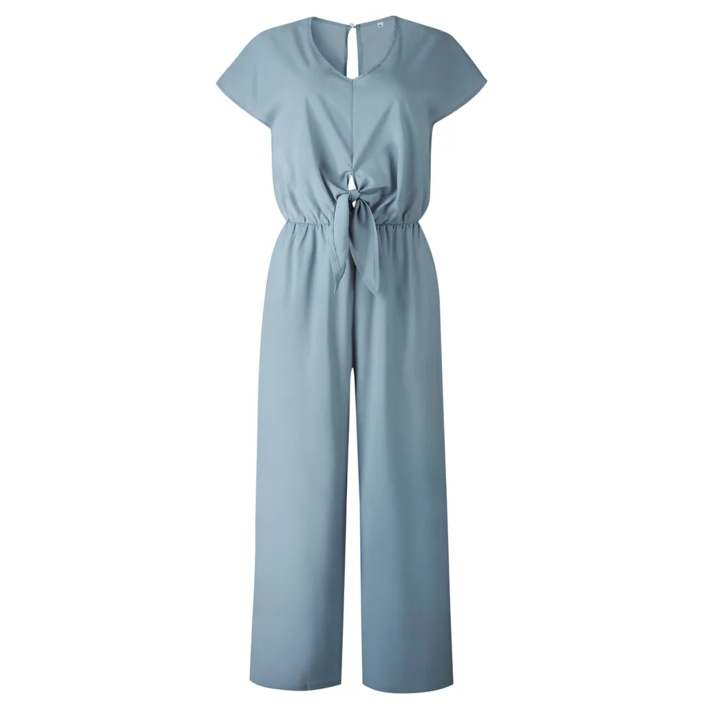 2021 летние женские праздничные повседневные Комбинезоны с V-образным вырезом на шнуровке с коротким рукавом Женское боди комбинезоны