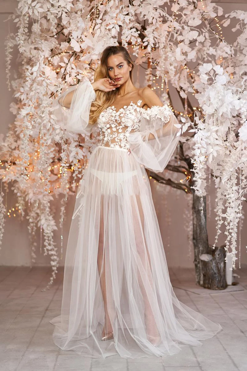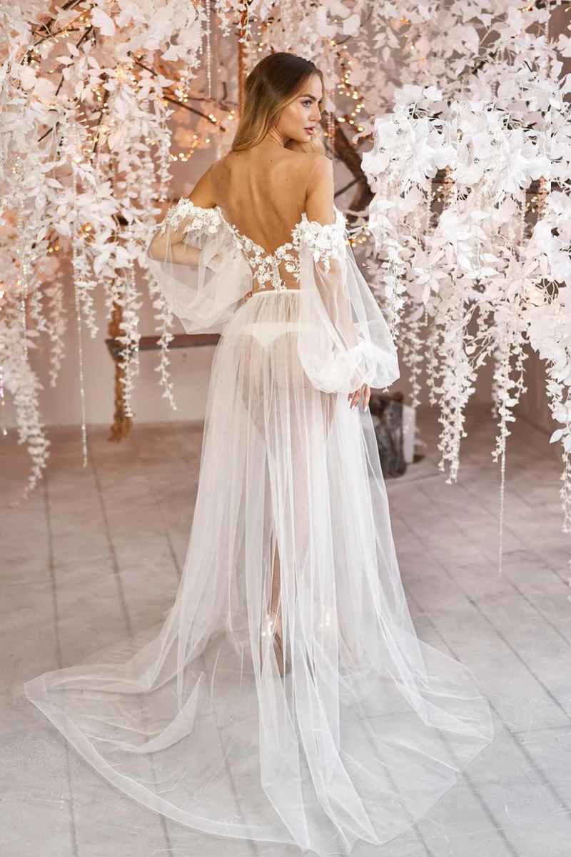 Элегантная белая Пижама, женский халат с открытыми плечами и длинными рукавами, Свадебный халат с кружевной аппликацией, ночная рубашка на заказ, пижамы