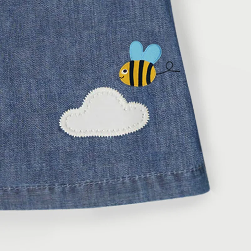 Хлопковое джинсовое платье с радужными рукавами для девочек 2-7 лет