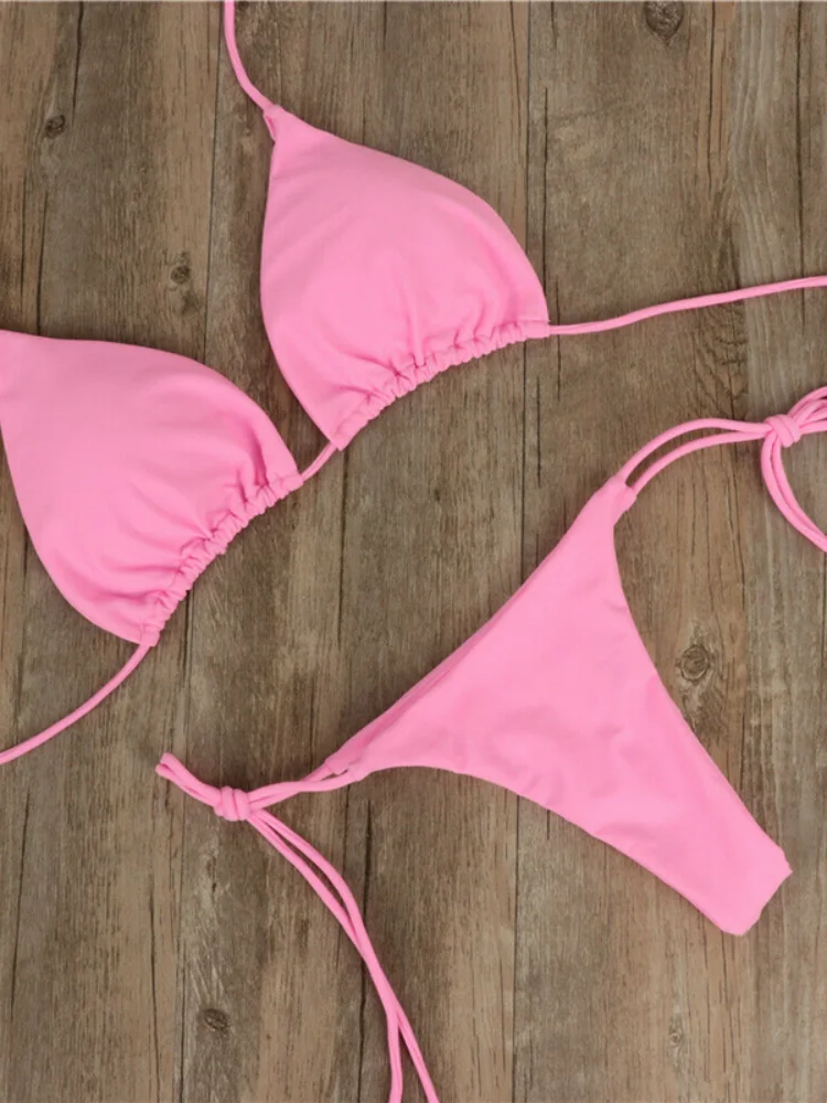 Новинка 2020, женский сексуальный однотонный купальник, микро бикин...