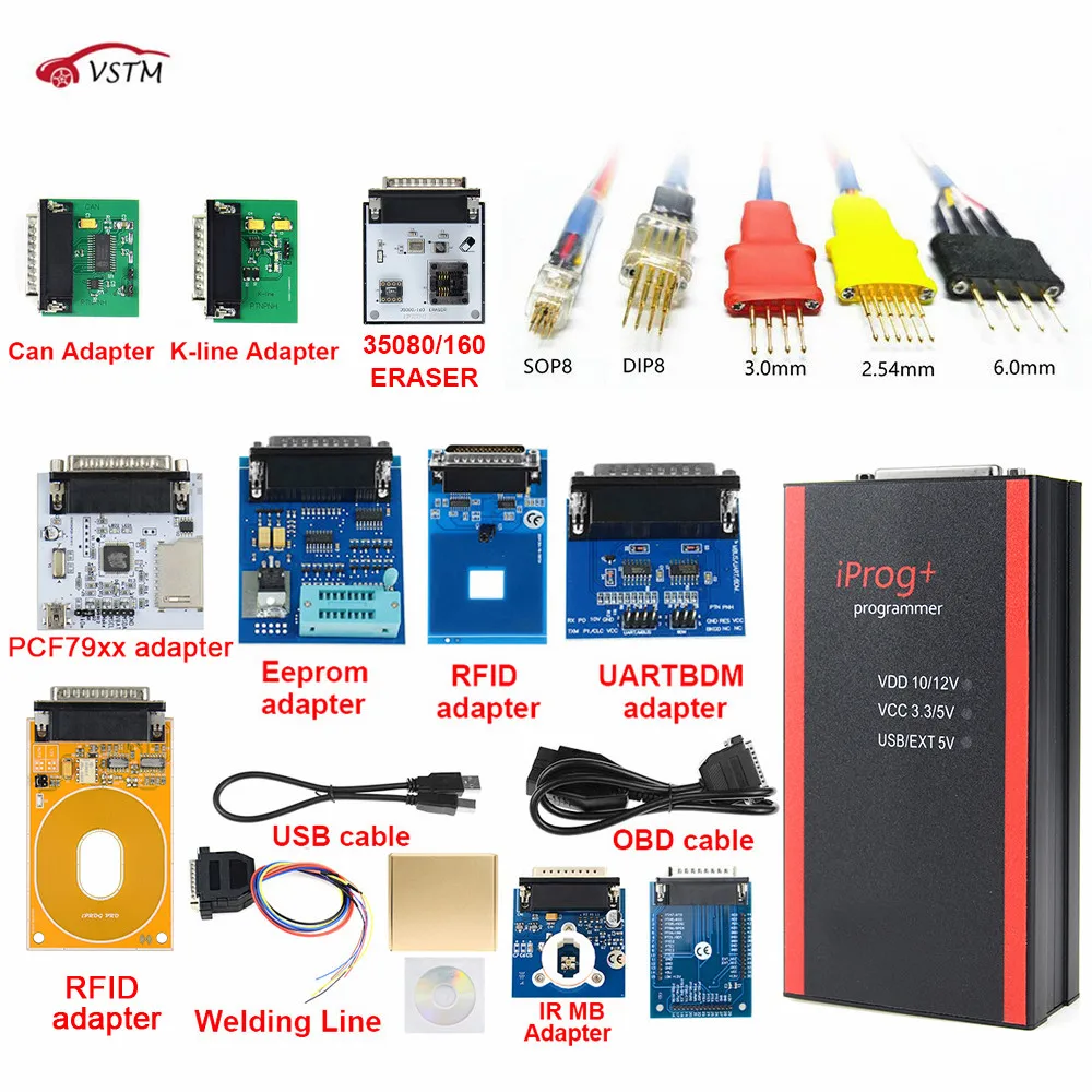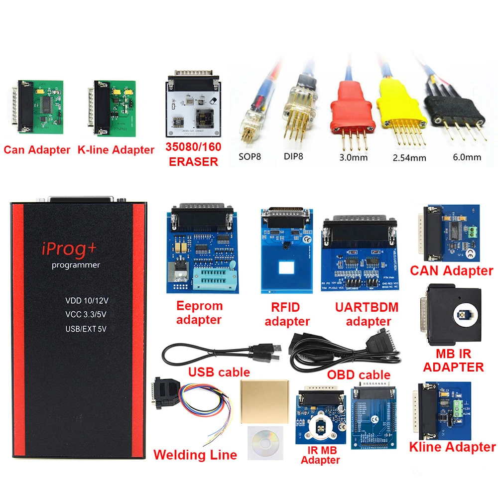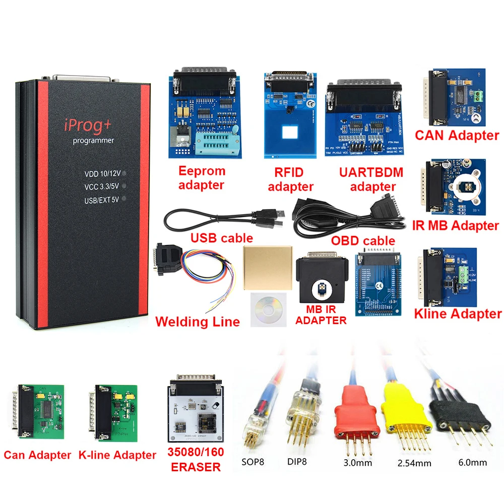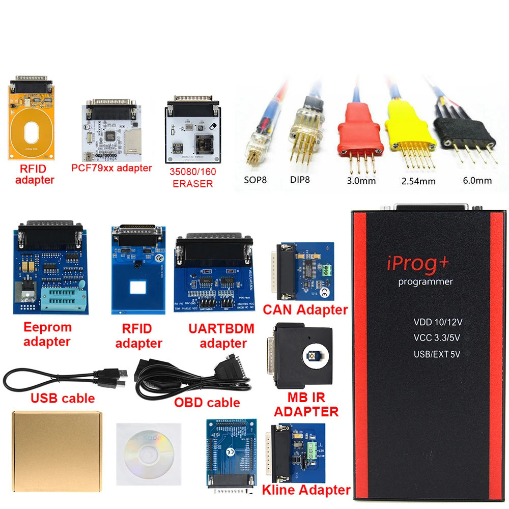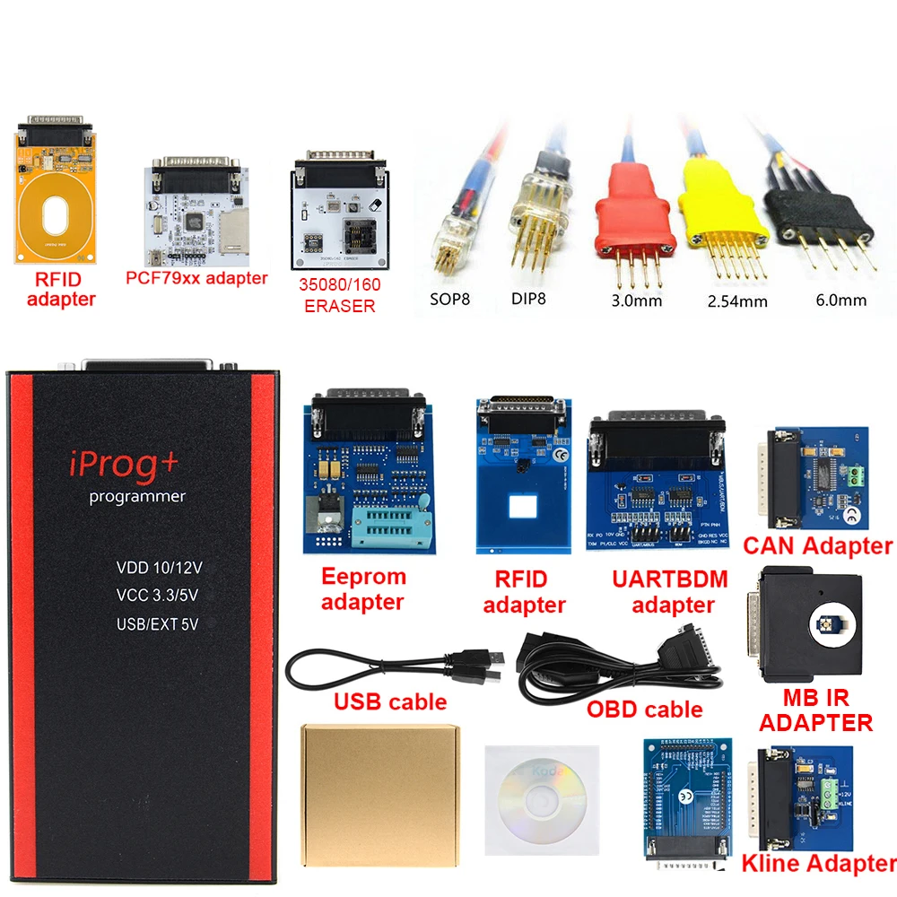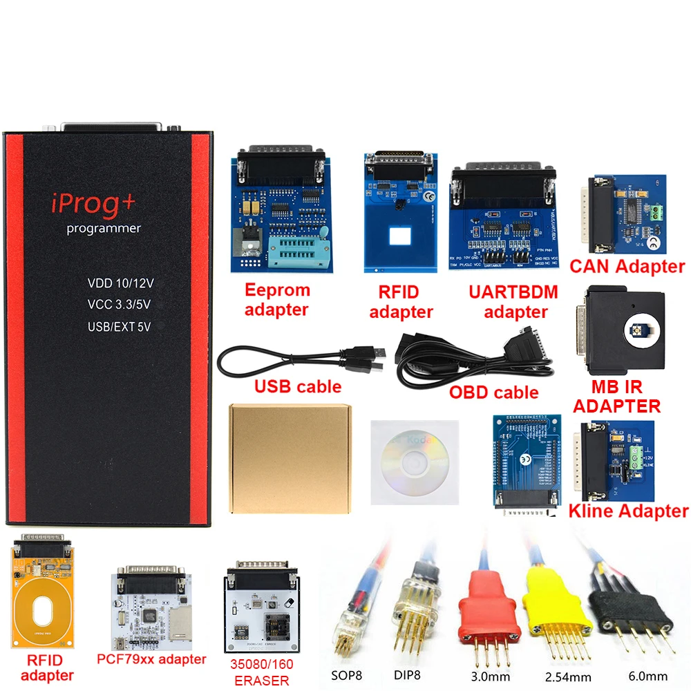 Легко выгорать при подключении к внешнему источнику питания 12 В (в посылка нет источника питания 12 В, поэтому клиент не использует 12 ВIprog + Pro Автомобильный ключ программист коррекция одометра подушка безопасности инструмент сброса