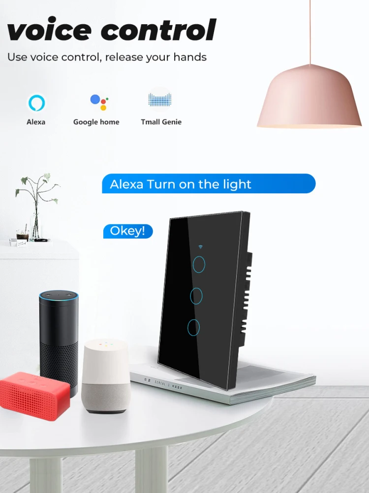 【Поддержка голосового динамика управление переключатель совместим с Alexa и Google Home Assistant, что позволяет использовать Голосовое управление smart switch для включения/выключения.