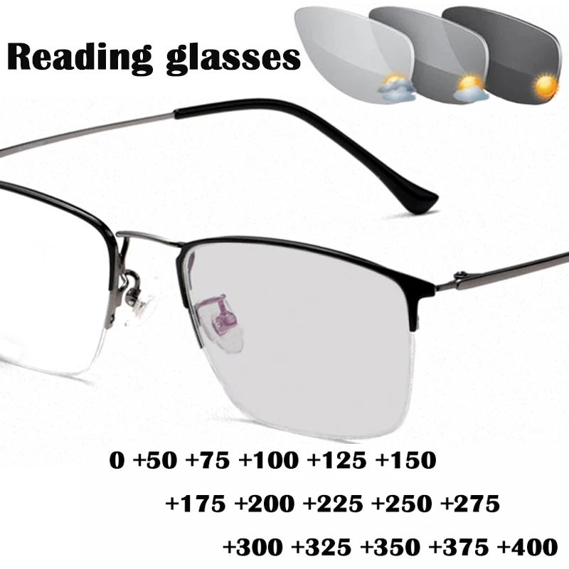 Мужские фотохромные очки для чтения, высокое качество, автоматическое обесцвечивание от солнца, дальнозоркость, очки для дальнозоркости, титановые полуободные очки для вождения