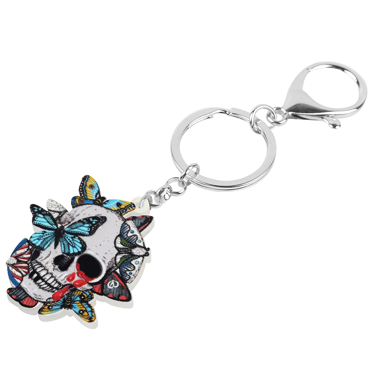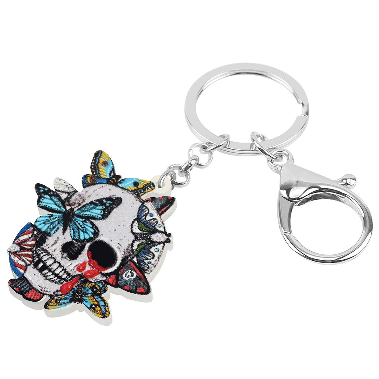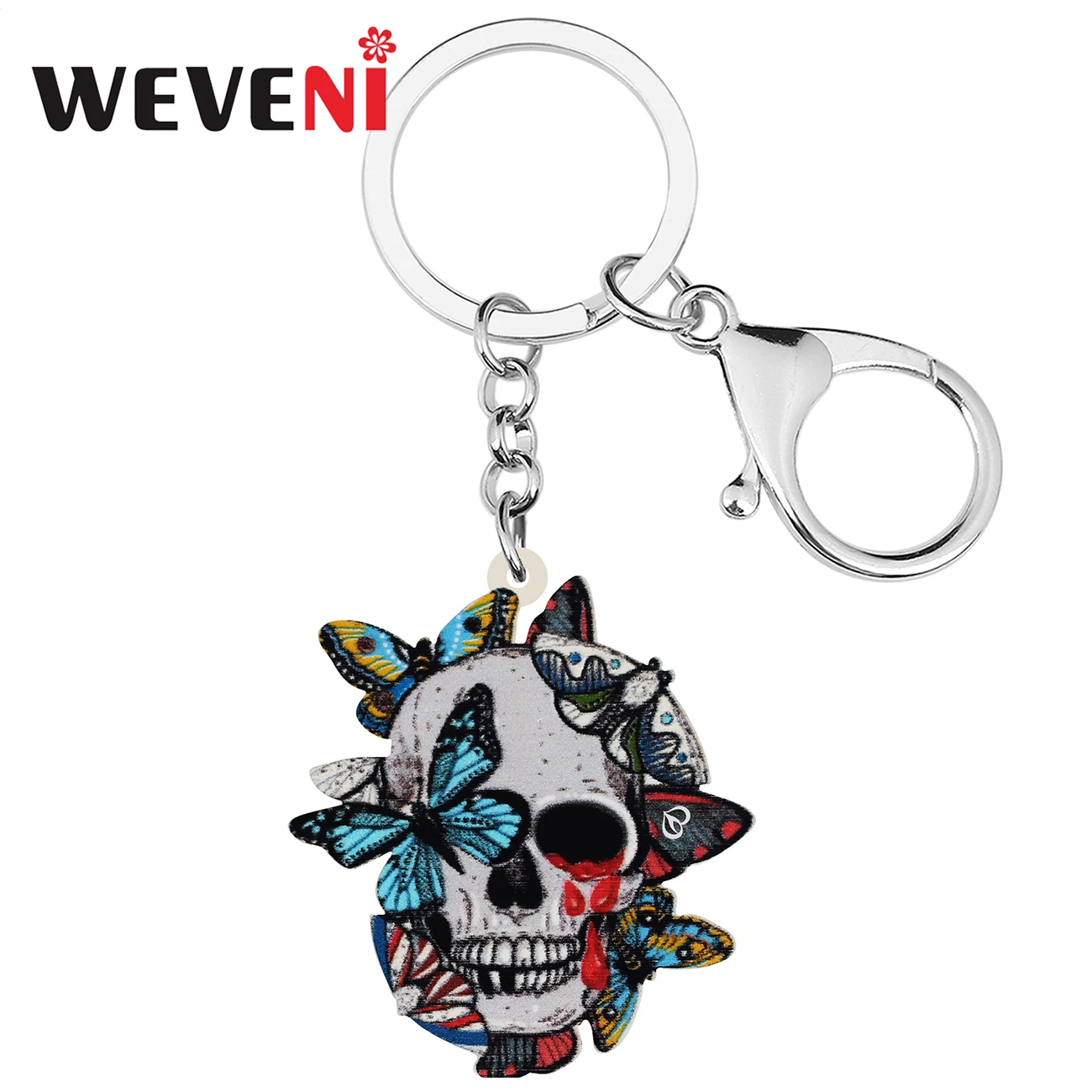 WEVENI Хэллоуин Акриловые Красочные бабочки Череп Скелет Брелки модный брелок кольцо подарок ювелирные изделия для женщин девушек