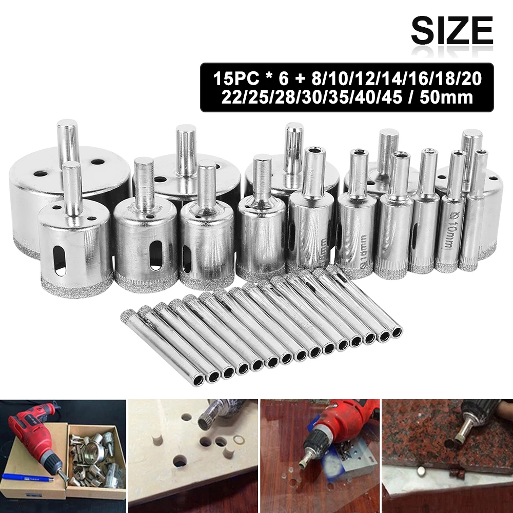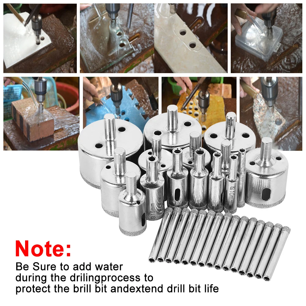 Набор сверл с алмазным покрытием, алмазные инструменты 6 - 50 мм, кольцевая пила для стекла, керамики, мрамора, плитки, гранита, M25, аксессуары сделай сам