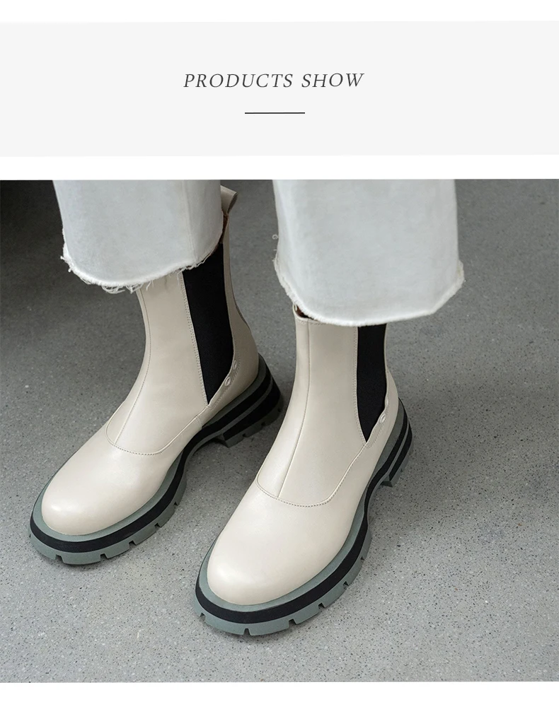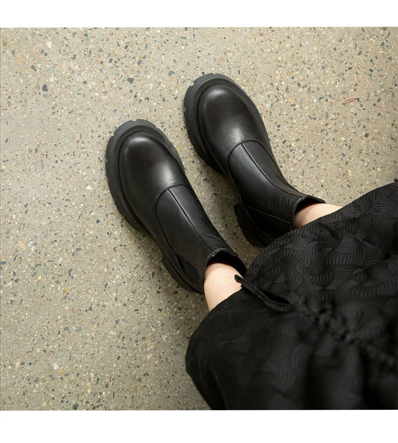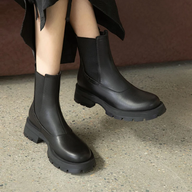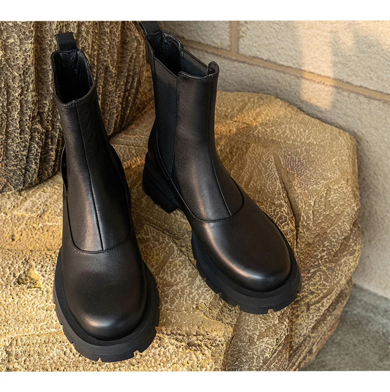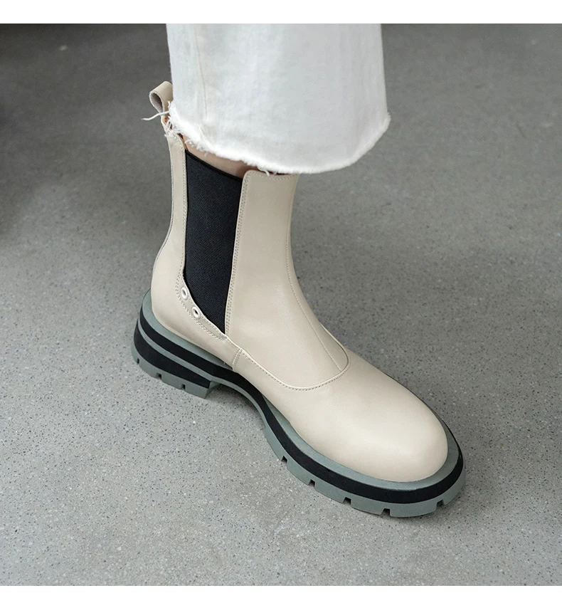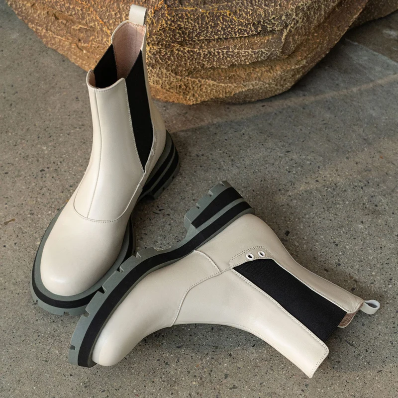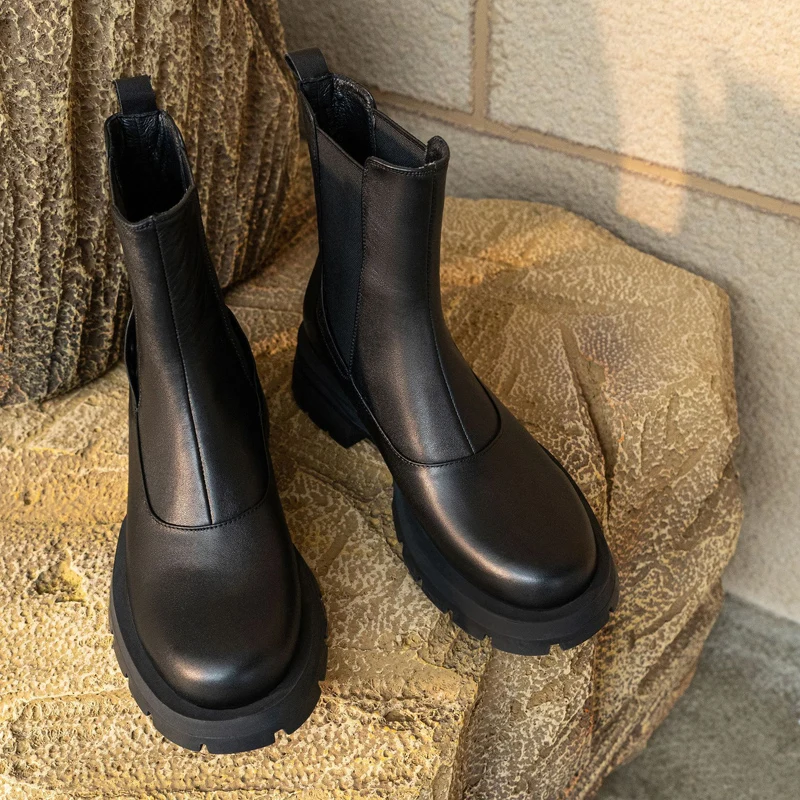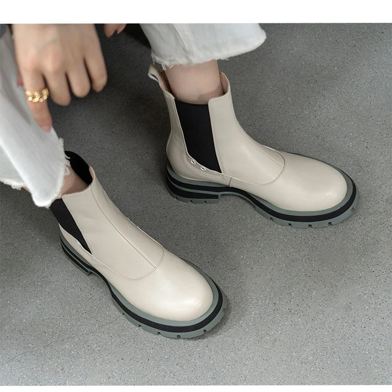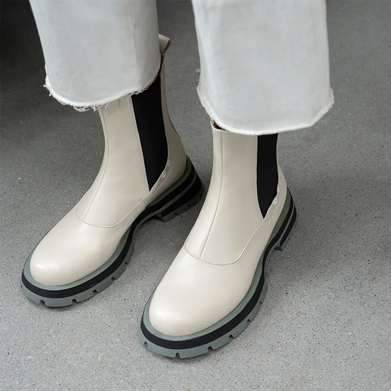 Ботинки-челси женские из натуральной кожи, без застежки, на платформе, с круглым носком, Осень-зима, 2021