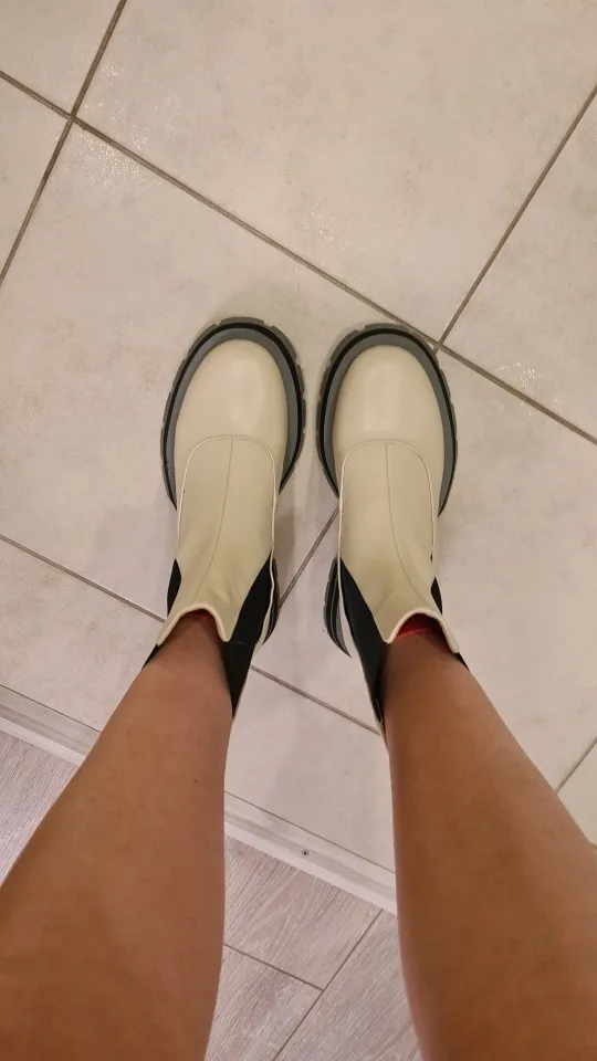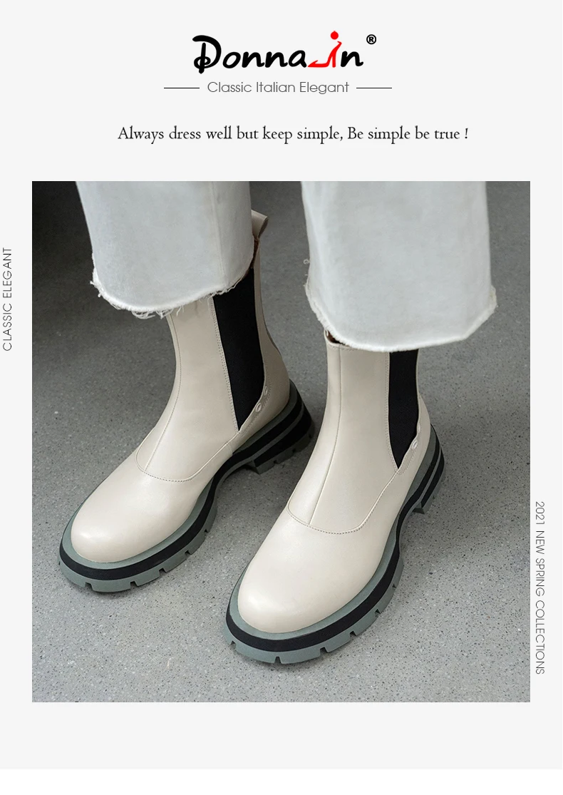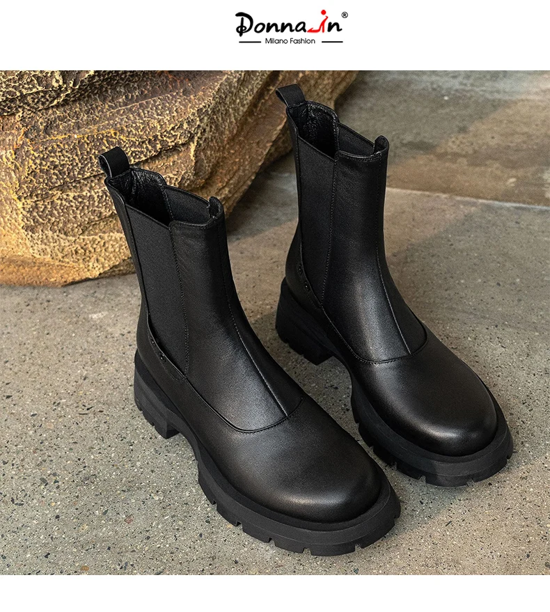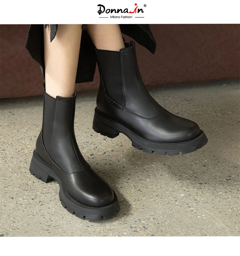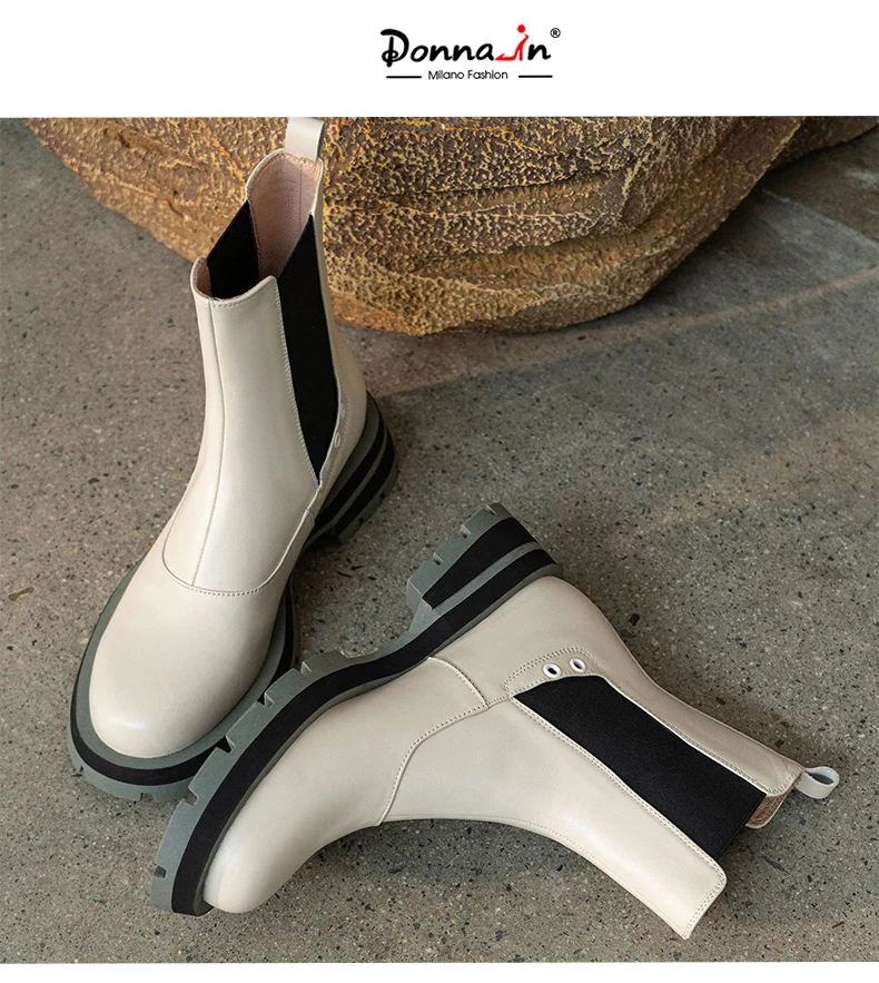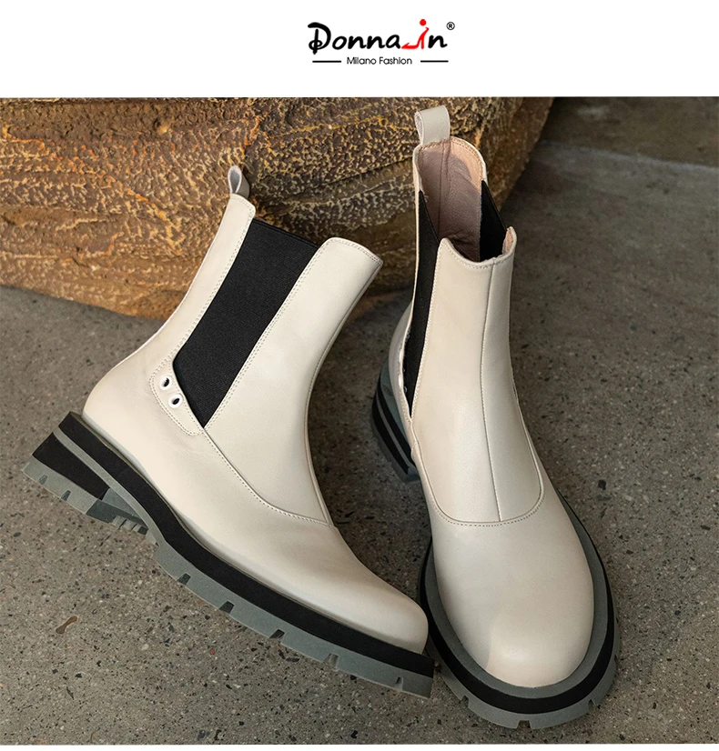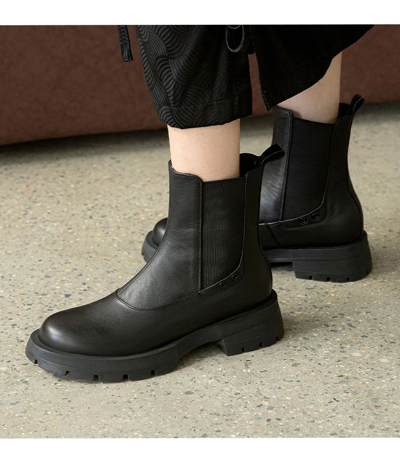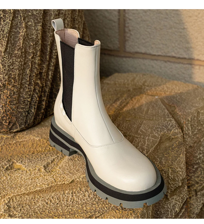 Ботинки-челси женские из натуральной кожи, без застежки, на платформе, с круглым носком, Осень-зима, 2021