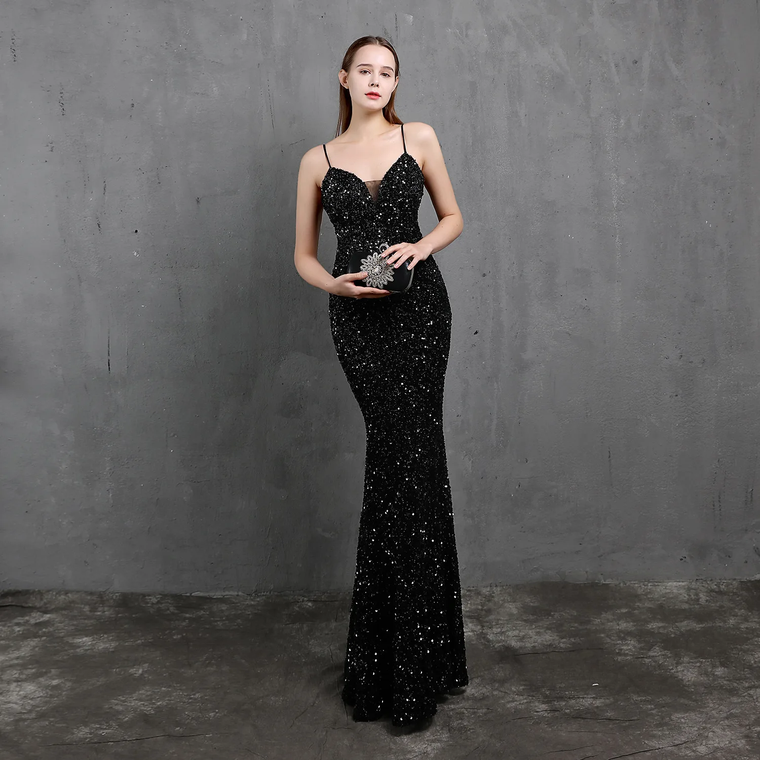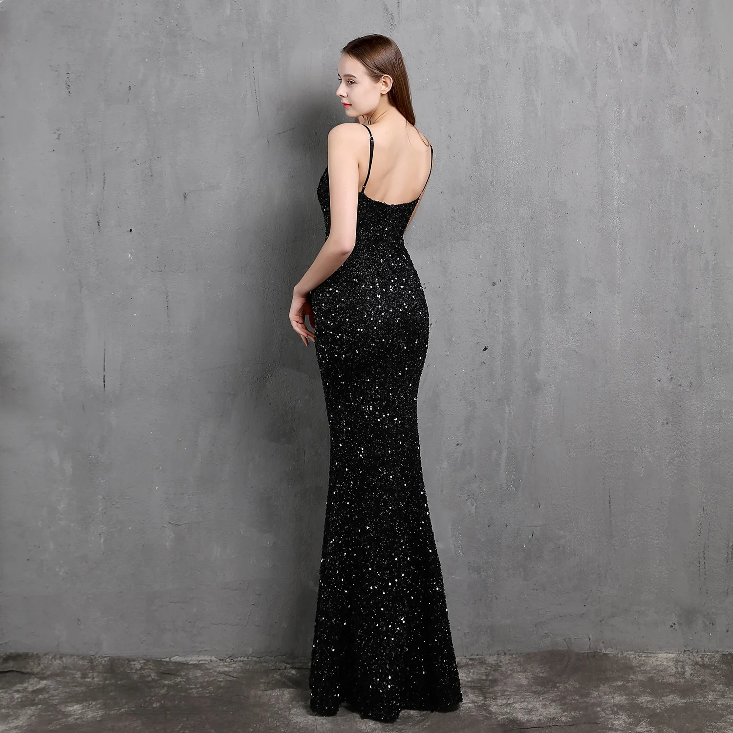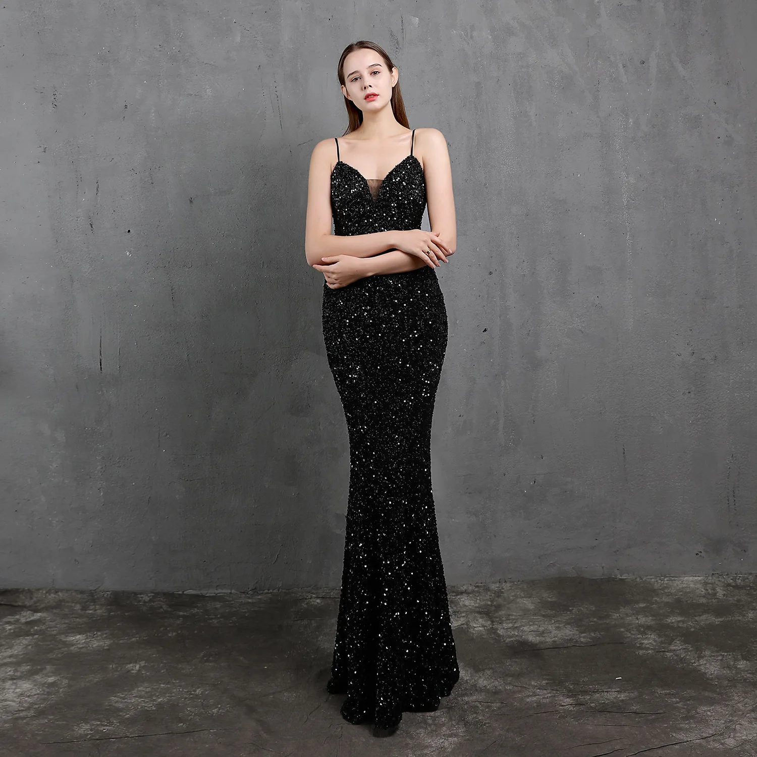Женское коктейльное платье, черное блестящее вечернее платье-Русалк...