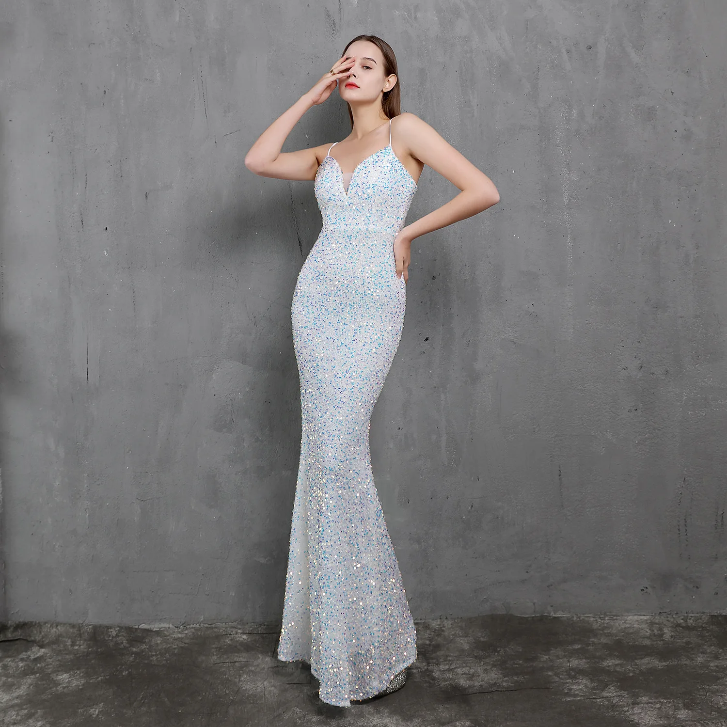 Женское вечернее платье с блестками, длинное ажурное платье с длинн...