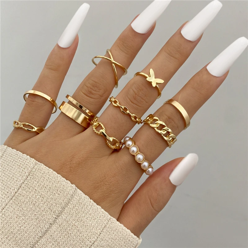 Модный комплект колец с покрытием для женщин в стиле панк для девуш...