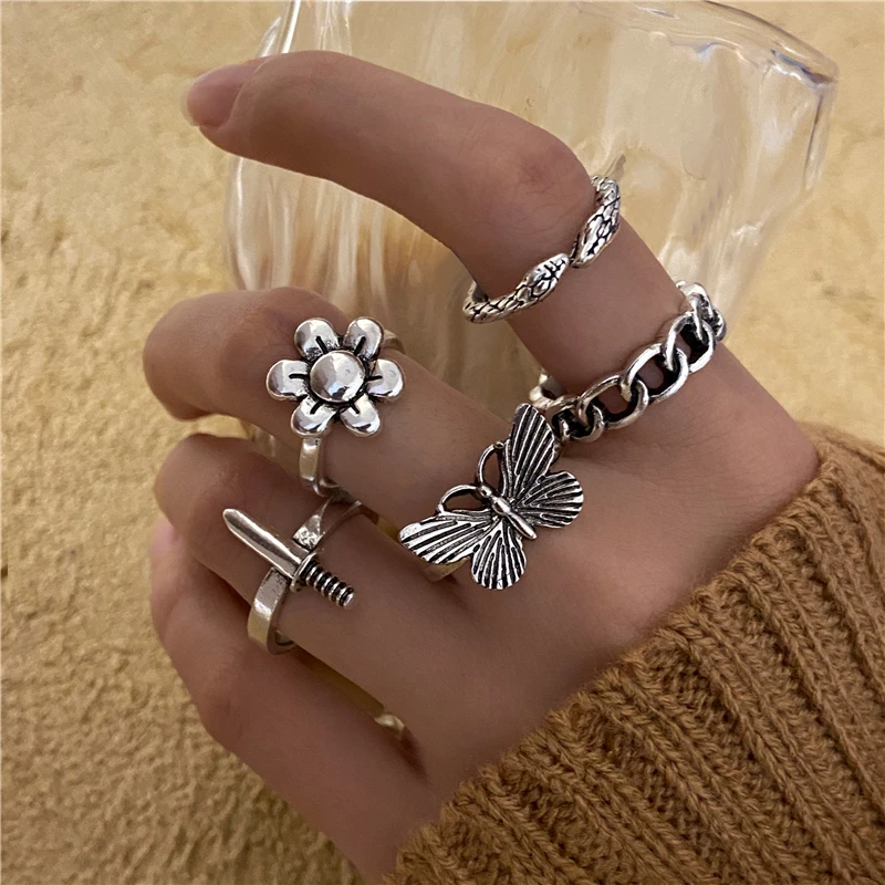 Набор колец в стиле хип-хоп с цветами, бабочкой, для женщин и мужчи...