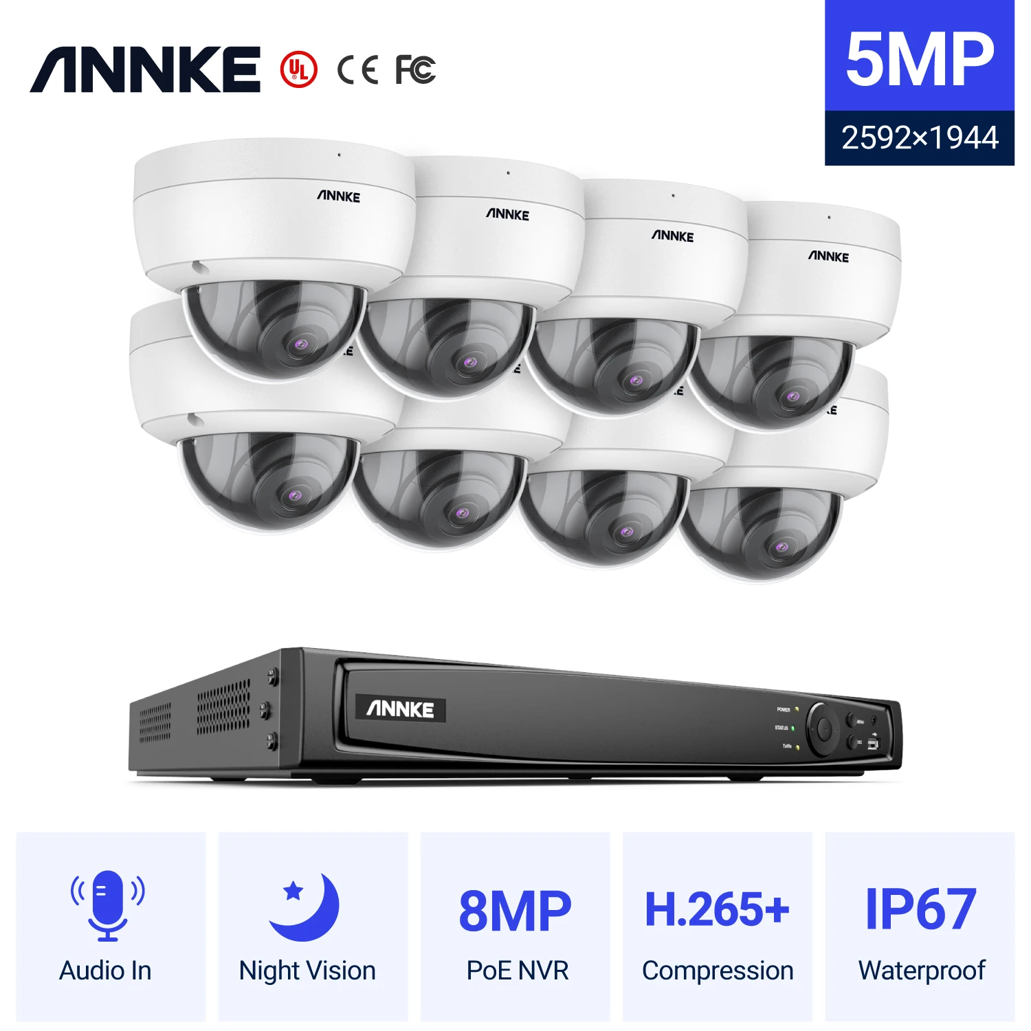 ANNKE 5MP H.265 + 16CH PoE сетевая система безопасности видео 8 шт ...