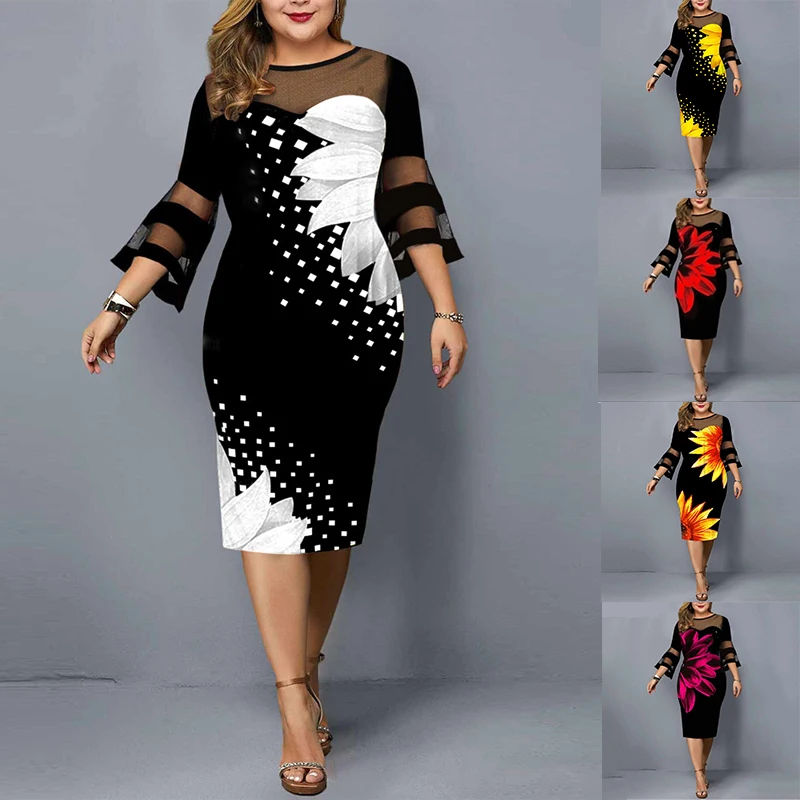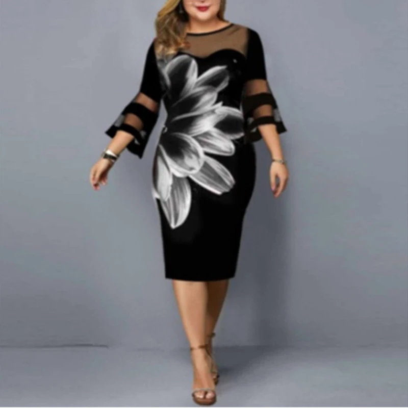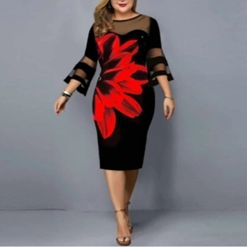 Женское вечернее платье-миди с цветочным принтом, размеры до 6xl