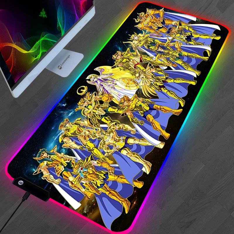 Коврик для мыши с RGB-подсветкой Saint Seiya, настольный игровой компьютерный Коврик для компьютерной мыши, большие аксессуары для геймеров, игровой коврик для мыши Varmilo