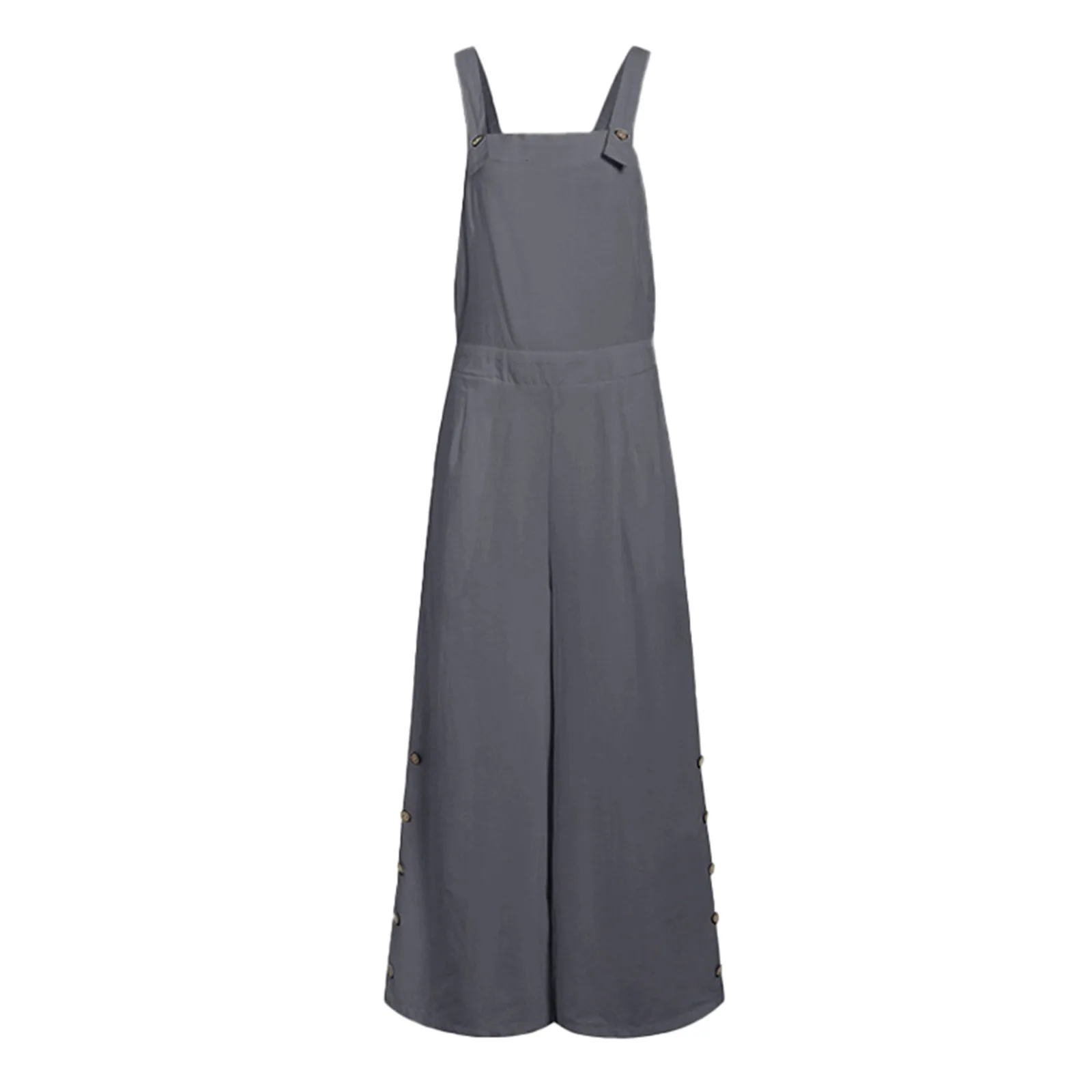 Женский свободный комбинезон, повседневные штаны на подтяжках, широкие однотонные Комбинезоны на пуговицах