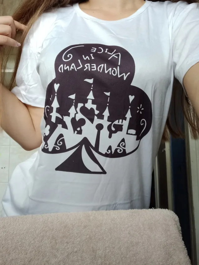 Женские футболки с рисунком Алисы в стране чудес, летние футболки с коротким рукавом и круглым вырезом, Повседневная Свободная Женская футболка, футболки оверсайз