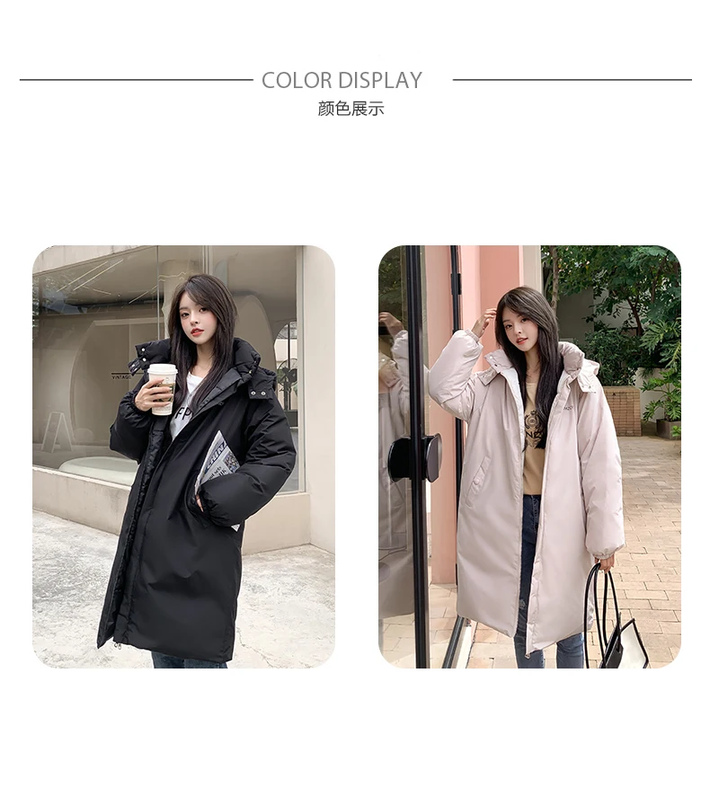 Зимние женские свободные парки, куртка, повседневные черные толстые теплые ветрозащитные парки с капюшоном, пальто 2021, модная женская верхняя одежда, длинные парки