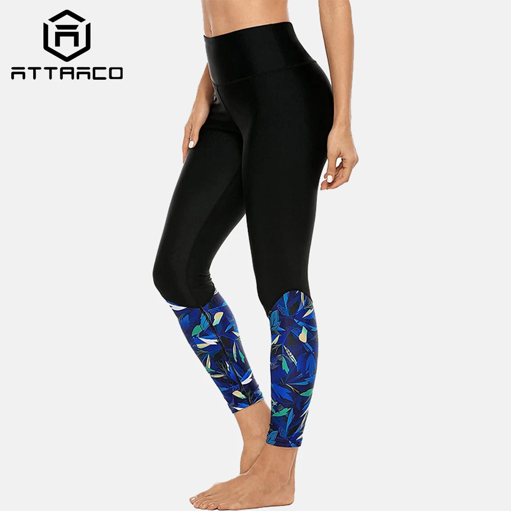 Женские Длинные Трико для плавания Attraco, эластичные штаны с высокой талией для дайвинга и серфинга, UPF 50 + штаны для Гидрокостюма