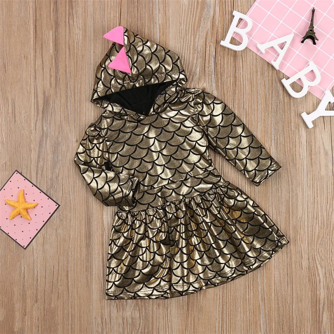 Осенние повседневные платья для маленьких девочек, платье принцессы в виде весы динозавра с длинными рукавами, платье с блестками и шапками для девочек