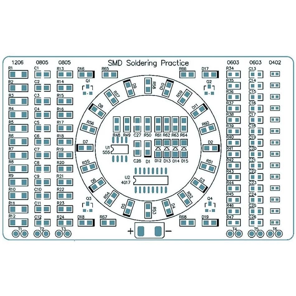 DIY SMD компоненты могут стимулировать интерес и таланты детей в обучении, это заставит их полюбить электронные проекты.Это хороший выбор для DIYers, электронных энтузиастов, студентов STEM и начинающих.Задняя часть платы с линейкой мм/дюйма, легко измерить компонент.Пожалуйста, убедитесь, что все компоненты в правильном направлении и в правильном месте; И проверьте, является ли псевдо и поплавковая сварка, это очень важно для практики и тестирования.Размер: 85,6 мм (Д) x 54 мм (Ш) x1.6 мм (В)Рабочее напряжение: 3-12 ВВ посылка есть руководство на английском языке