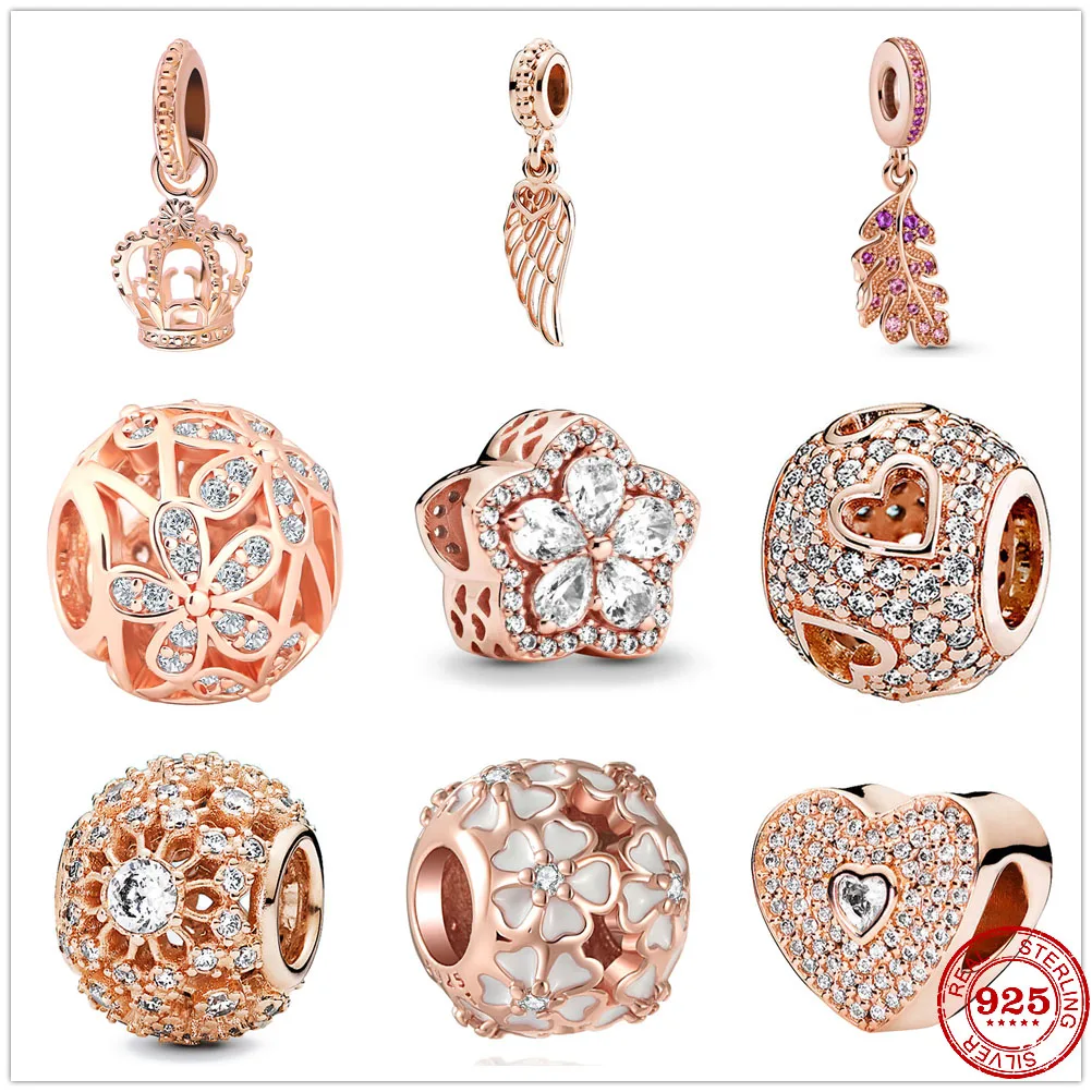 Женский браслет из серебра 925 пробы, с подвеской в виде короны и цветов