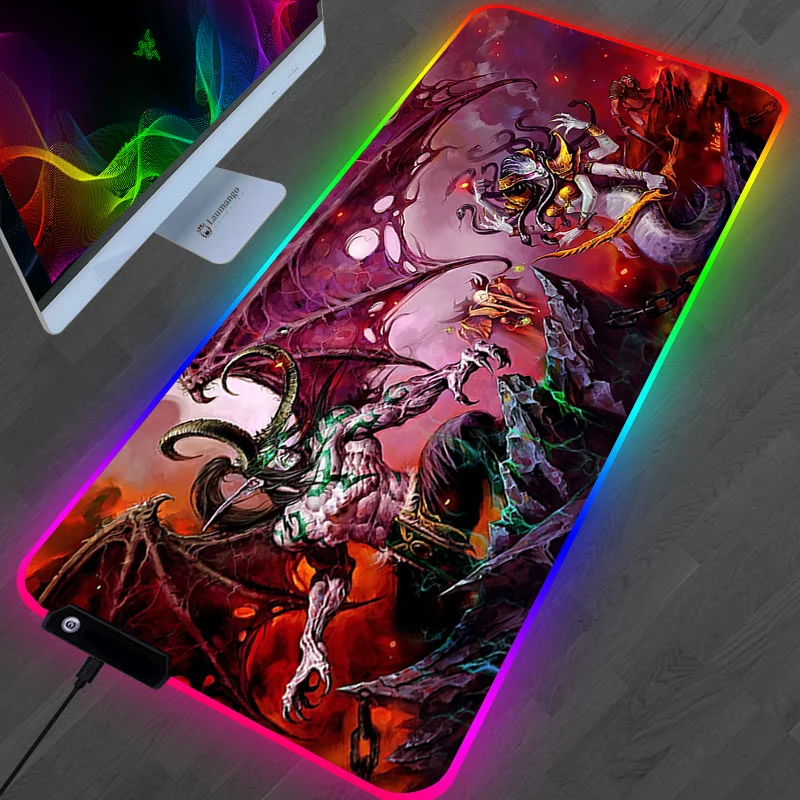 RGB игровой коврик для мыши World of Warcraft с аниме, игровой ноут...