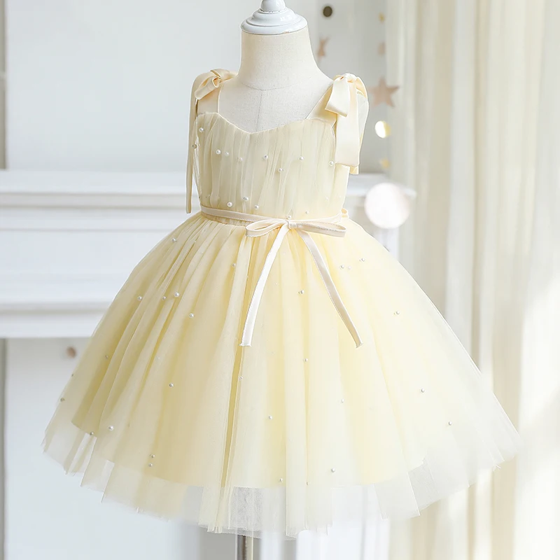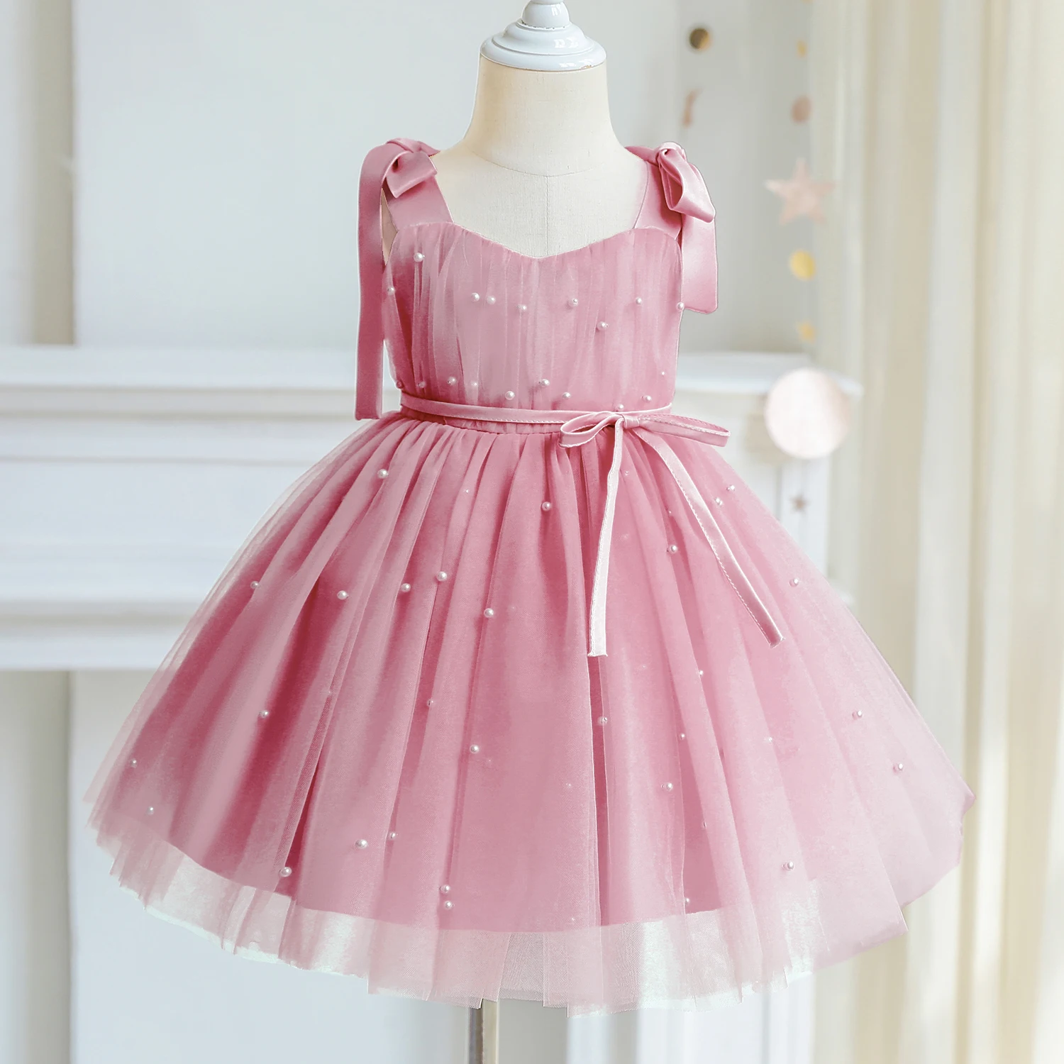 Платье принцессы для девочек, элегантное вечернее бальное платье-пачка для свадьбы, выпускного вечера, Детская фатиновая одежда с бантом, для дня рождения, детское платье подружки невесты