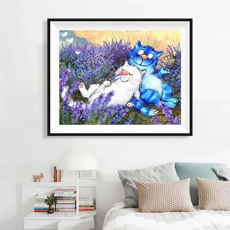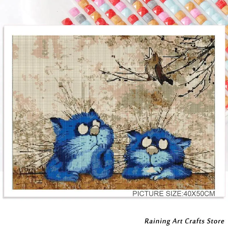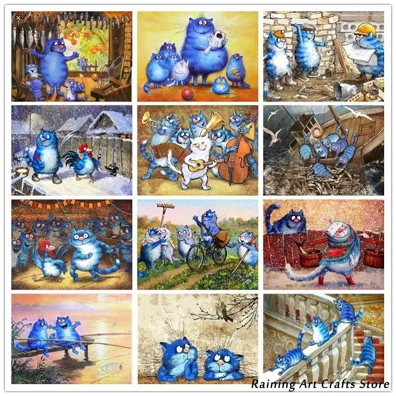 Алмазная живопись 5D сделай сам, смешная картина с голубым котом, Юмористическая, полная вышивка, вышивка крестиком, животное, мозаика, картина для домашнего декора