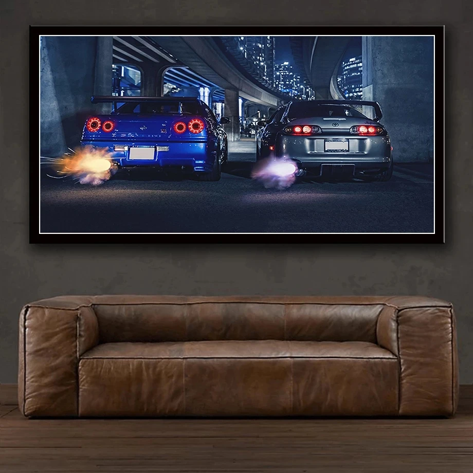 GTR R34 VS Supra постер с автомобилем, современный холст, настенная живопись, HD-печать для гостиной, домашний декор, Постер без рамы