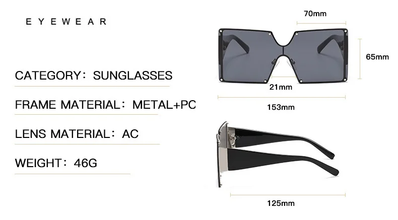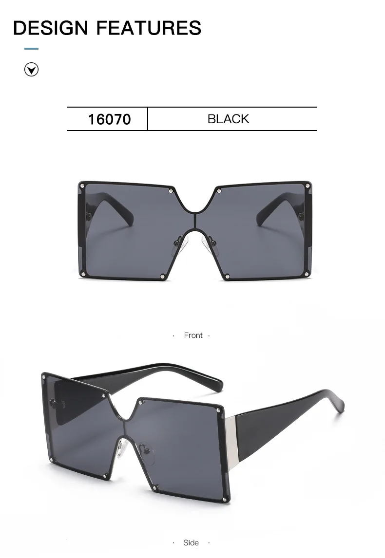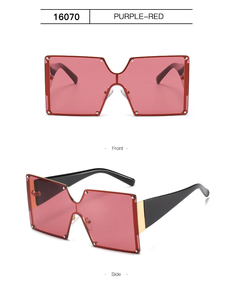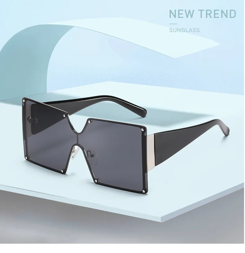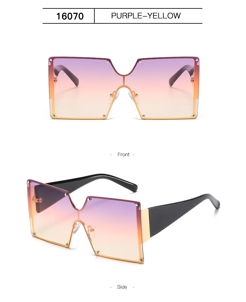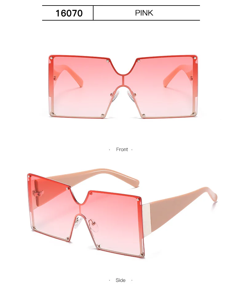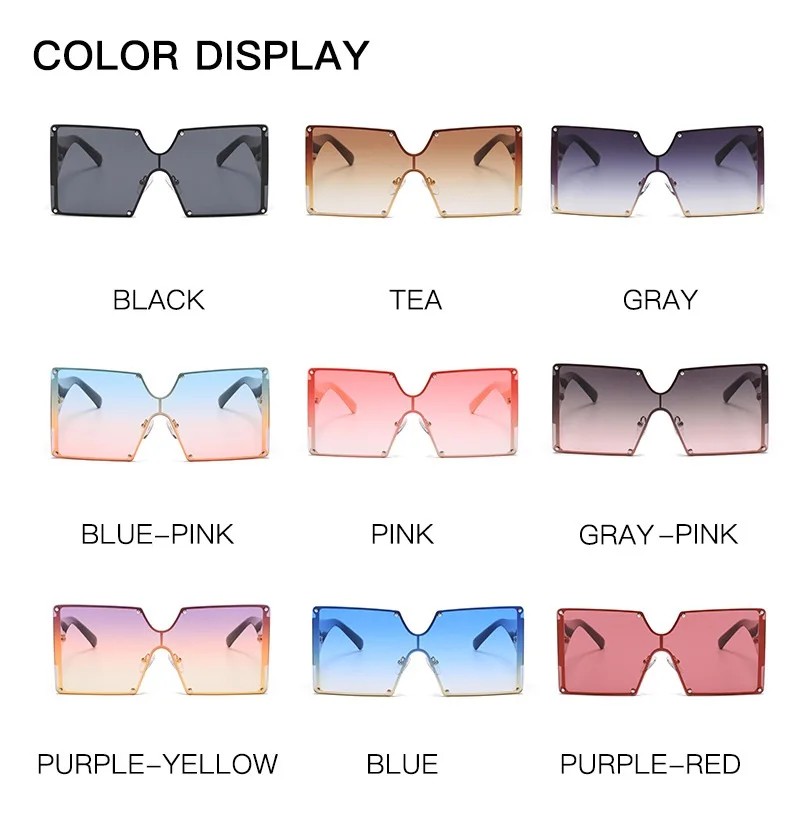 Солнцезащитные очки без оправы UV400 для мужчин и женщин, большие квадратные, цельные, градиентные, в винтажном стиле ретро