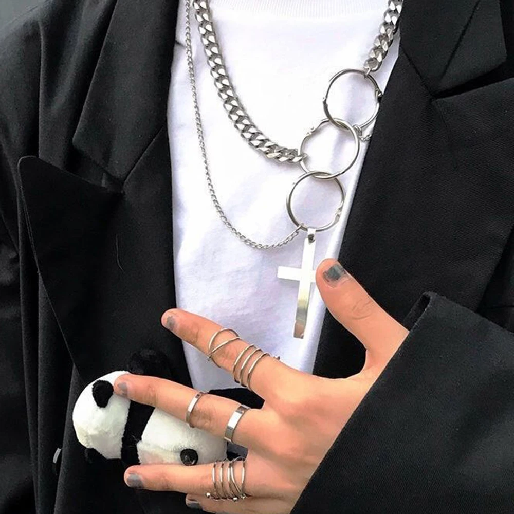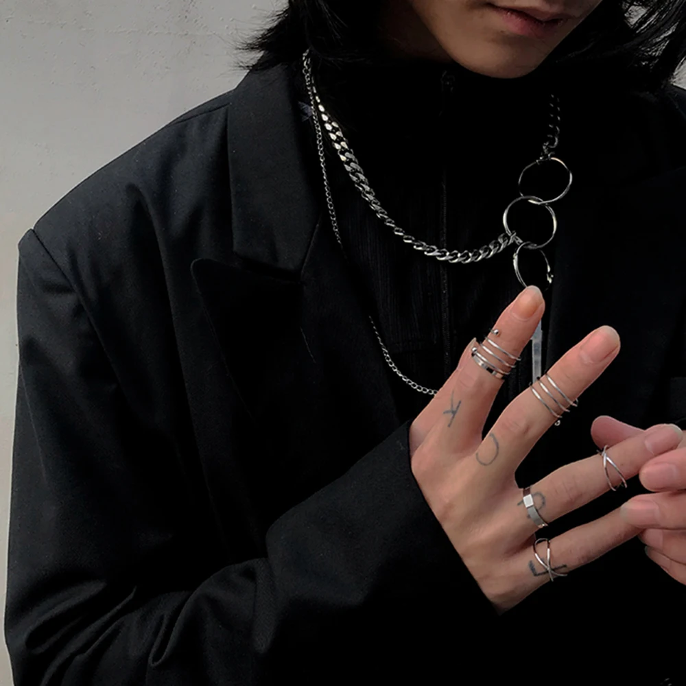 Набор колец в стиле хип-хоп с золотой цепочкой для женщин и девушек...