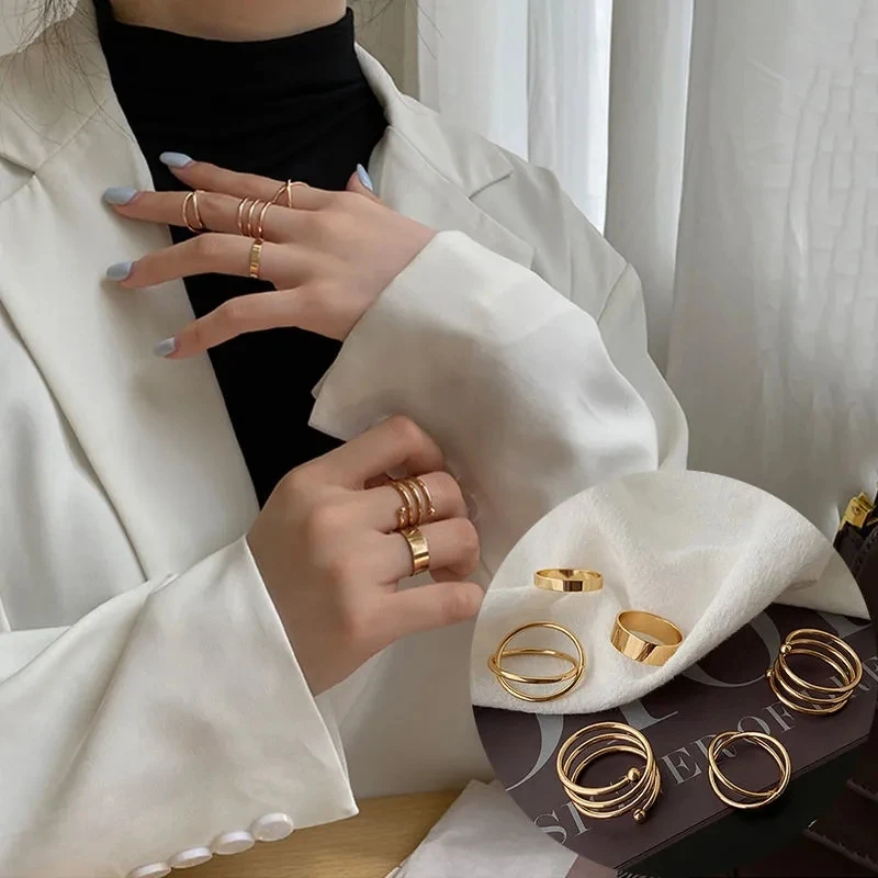 6 шт.компл. панк кольца на палец минималистичные гладкие Золотыечер...