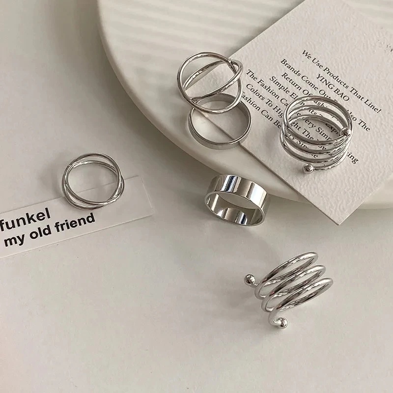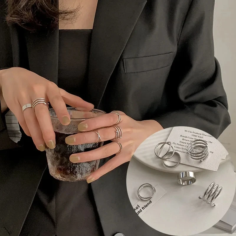 Женские кольца в стиле панк, 6 шт.компл., минималистичные гладкие з...