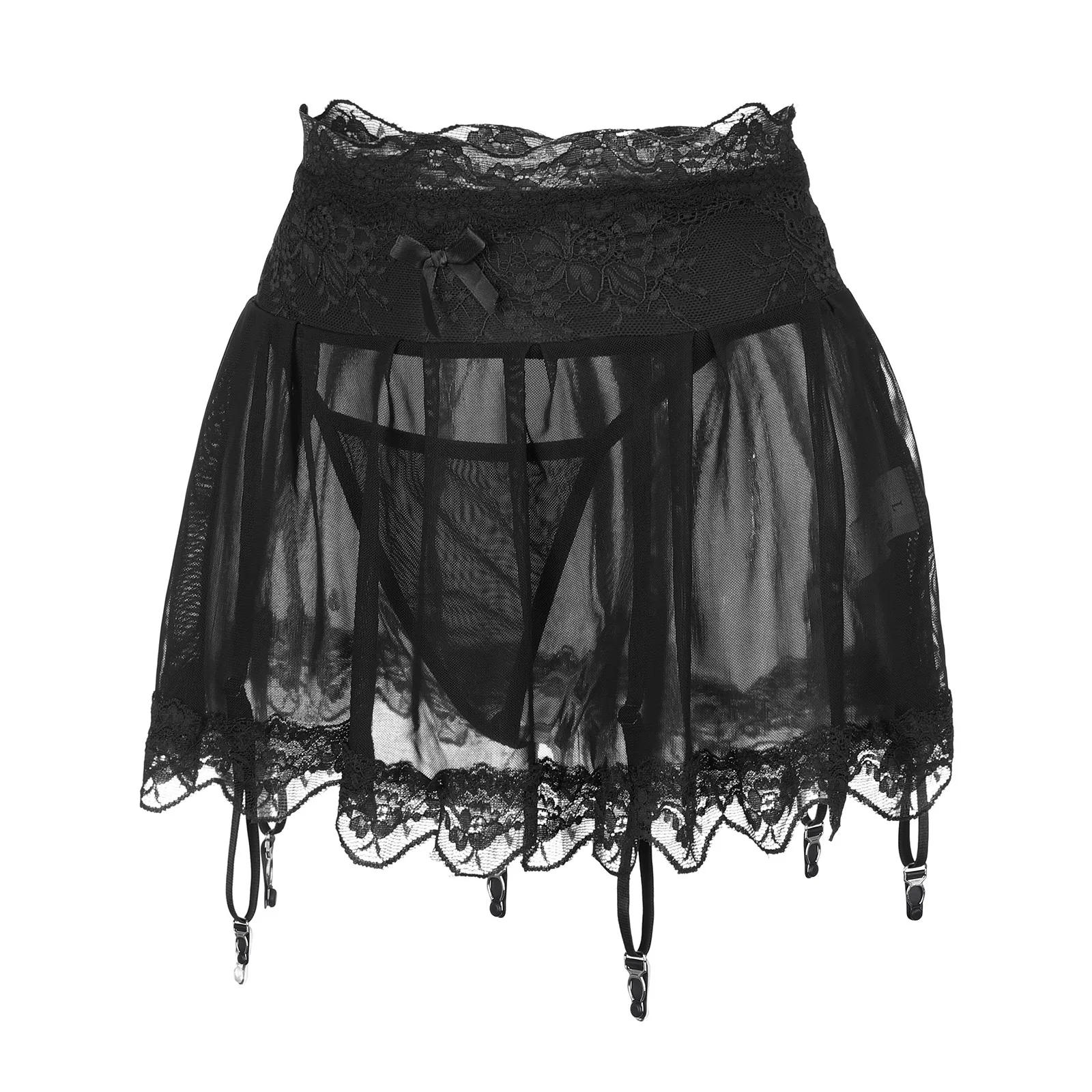 Женское сексуальное нижнее белье, юбка с подвязками, прозрачное кру...