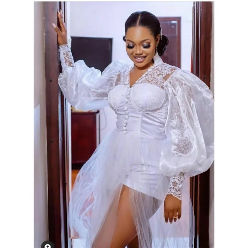 Женский тюлевый халат, белое кимоно с оборками и длинным рукавом, сексуальная ночная рубашка
