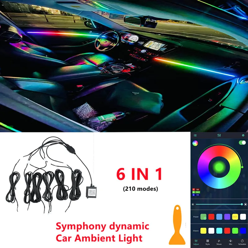 6 в 1 RGB симфония автомобиля окружающий интерьер светодиодный акри...